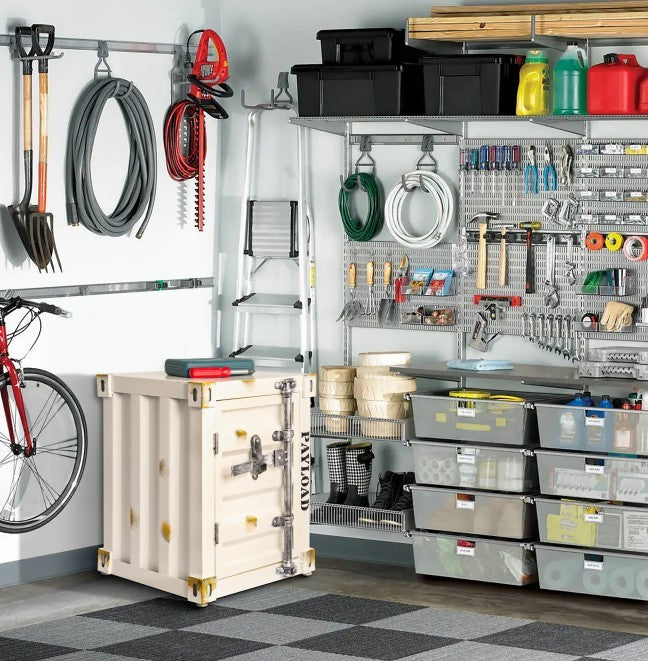 This industrial-style Container End Table, designed to resemble a shipping container with its robust construction and sleek appearance. This versatile piece can be used as a bedside table, a side table, or a tool storage container in your garage. It features ample storage space, providing a practical and functional solution for organizing your belongings. The sturdy design ensures that it will stand up to everyday use and last for years to come. Whether you're looking to add an industrial edge to your home decor or need a practical storage solution, our industrial-style small table is the perfect choice.