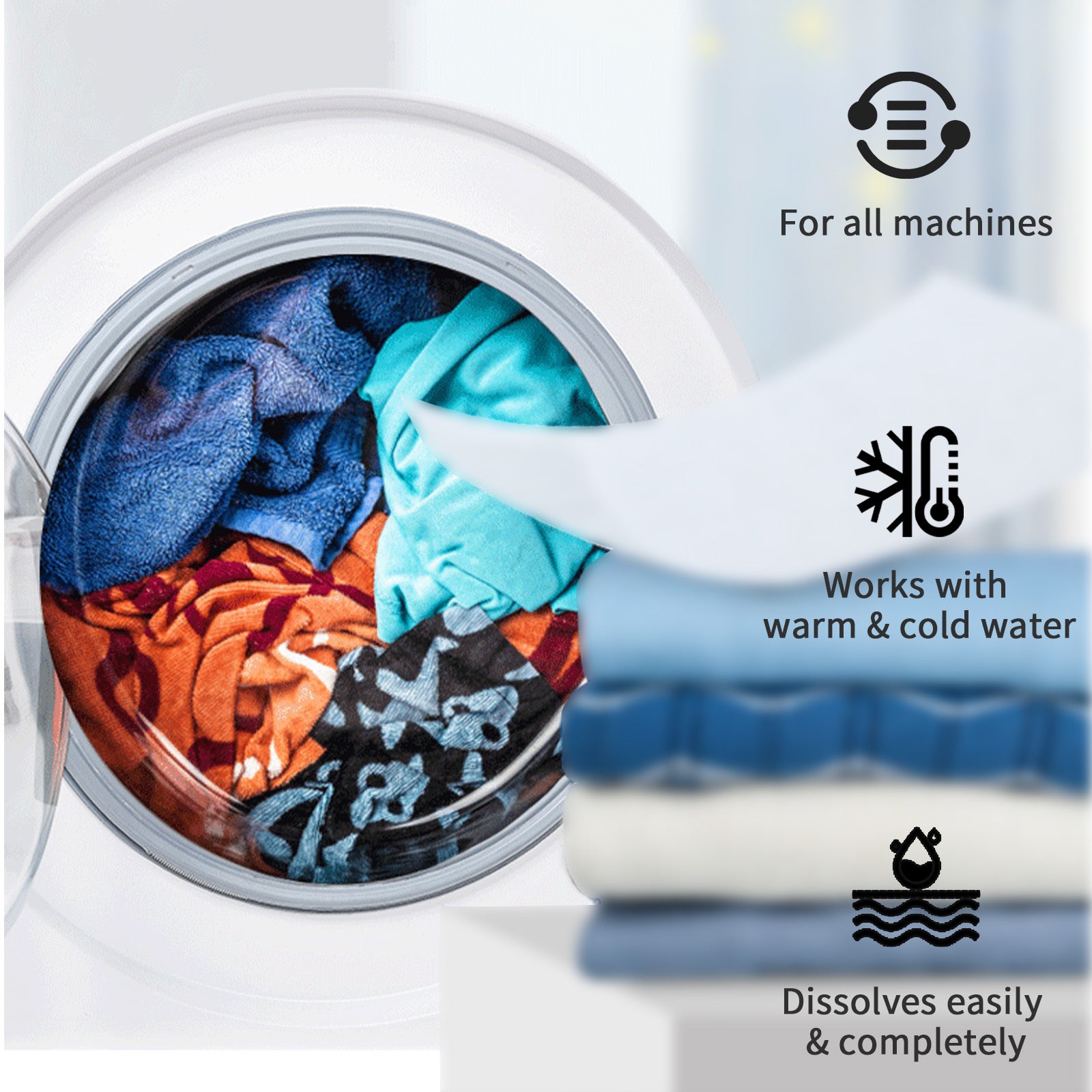 A more convenient clothing cleaning product, one sheet per use. It dissolves in water, releasing powerful cleaning power to break down various stubborn stains. The formula is gentle, protecting fabrics and keeping clothes looking fresh for longer. It features a refreshing linen scent, leaving clothes with a pleasant fragrance.