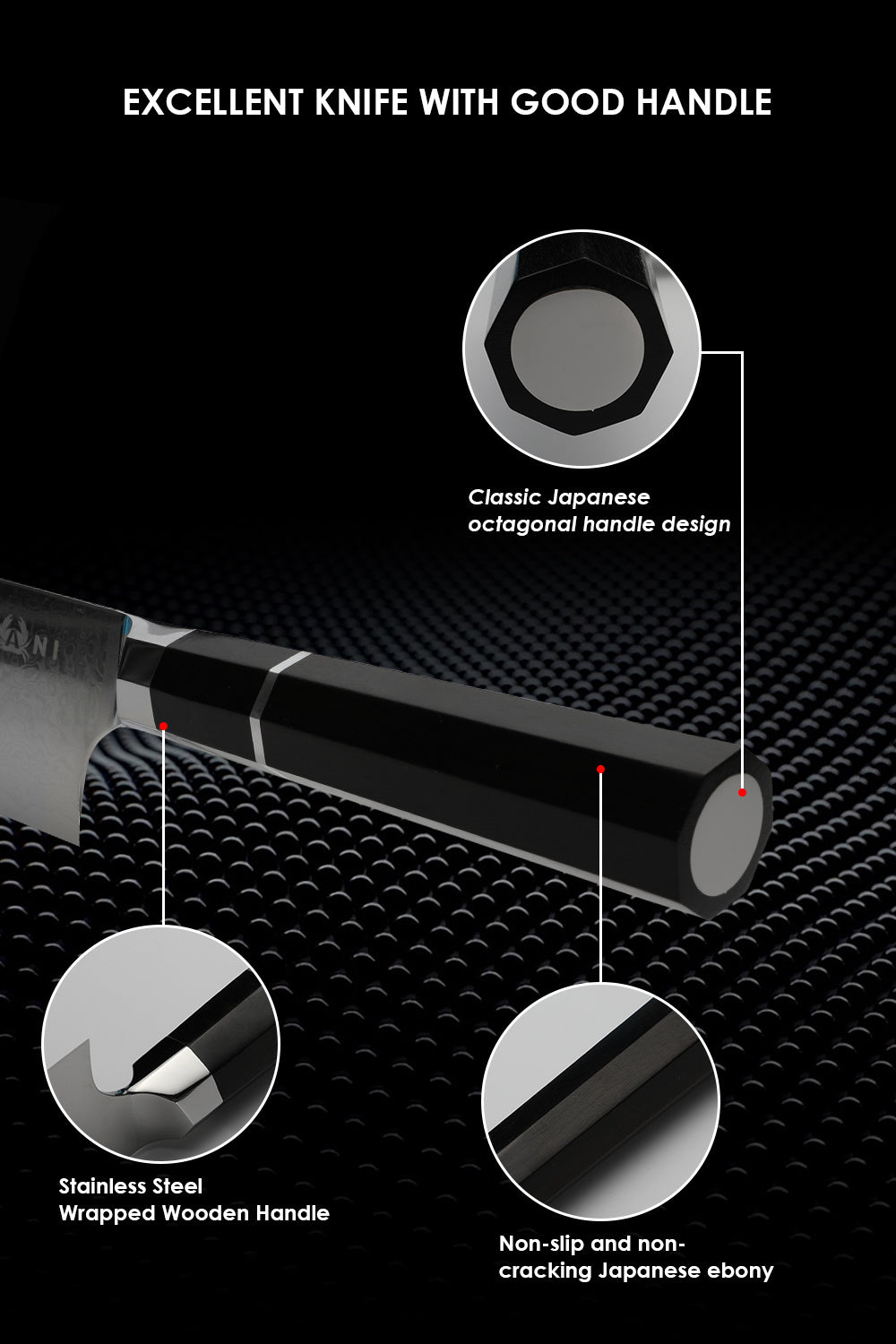 - [Top Design]: The fulltang design makes the Japanese chef knife exceptionally strong, and the hexagonal handle is not only classic Japanese style, but also fits comfortably in the palm of your hand.