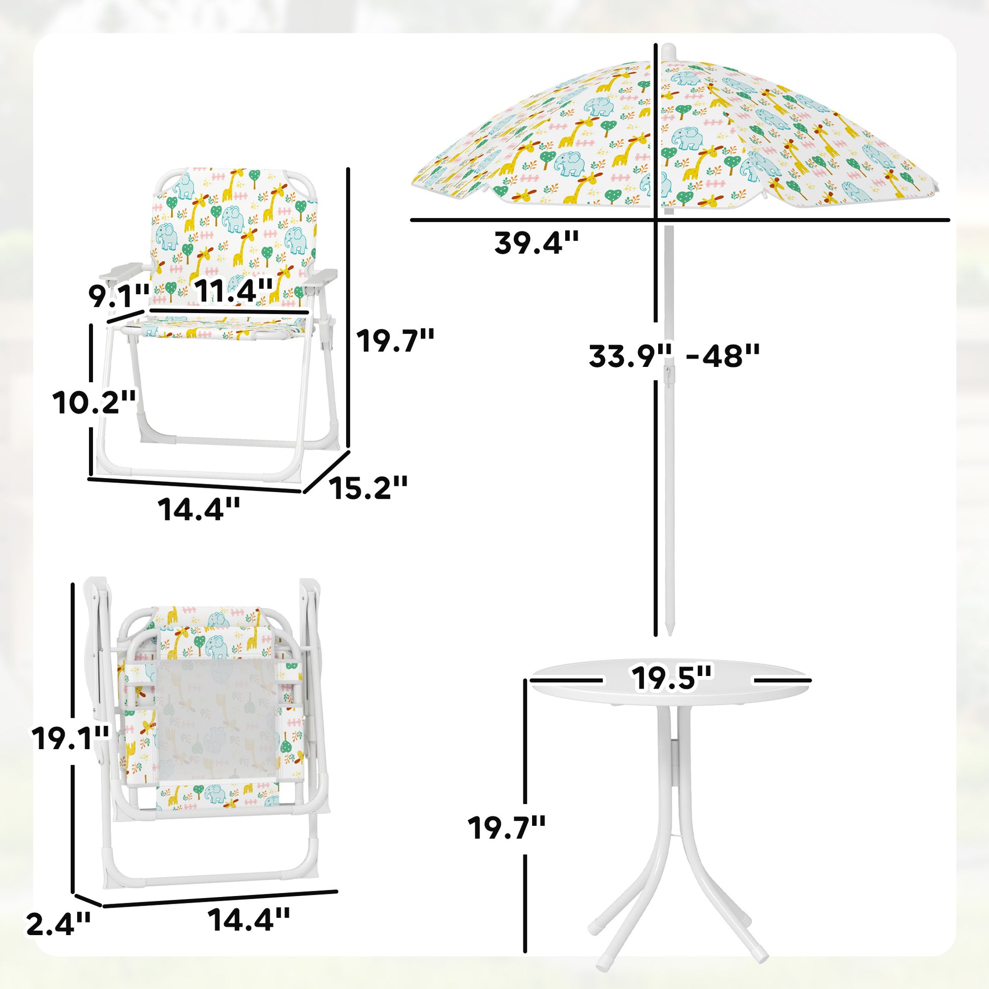 US Local Kids Picnic Table And Chair Set, Outdoor Activity Table With Foldable Chairs, Removable Umbrella For Backyard, White