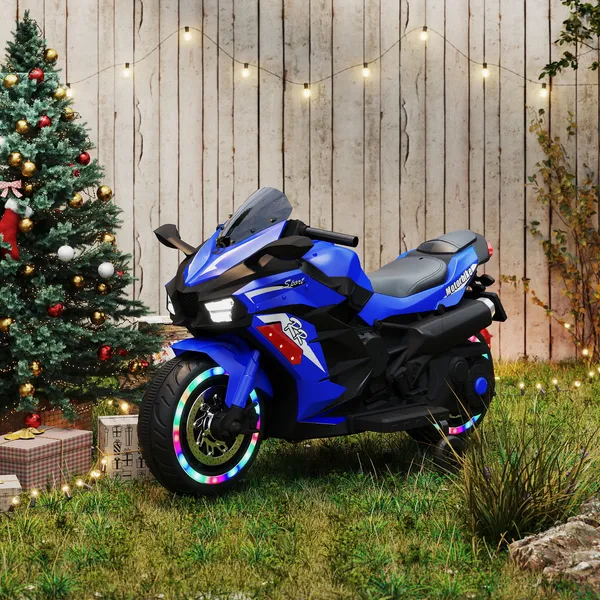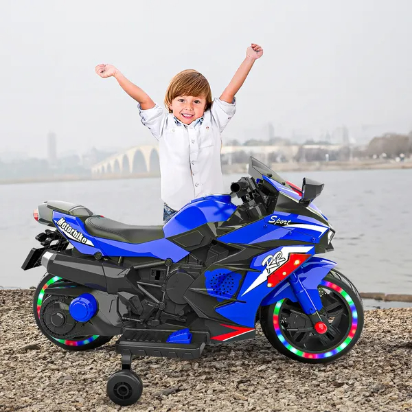 US Local Kids Powered Ride-ons Toy, Kids Motorcycle For 3-6 Years, 12V Electric Ride On Motorcycle With Light Wheel & Bluetooth Music-Blue
