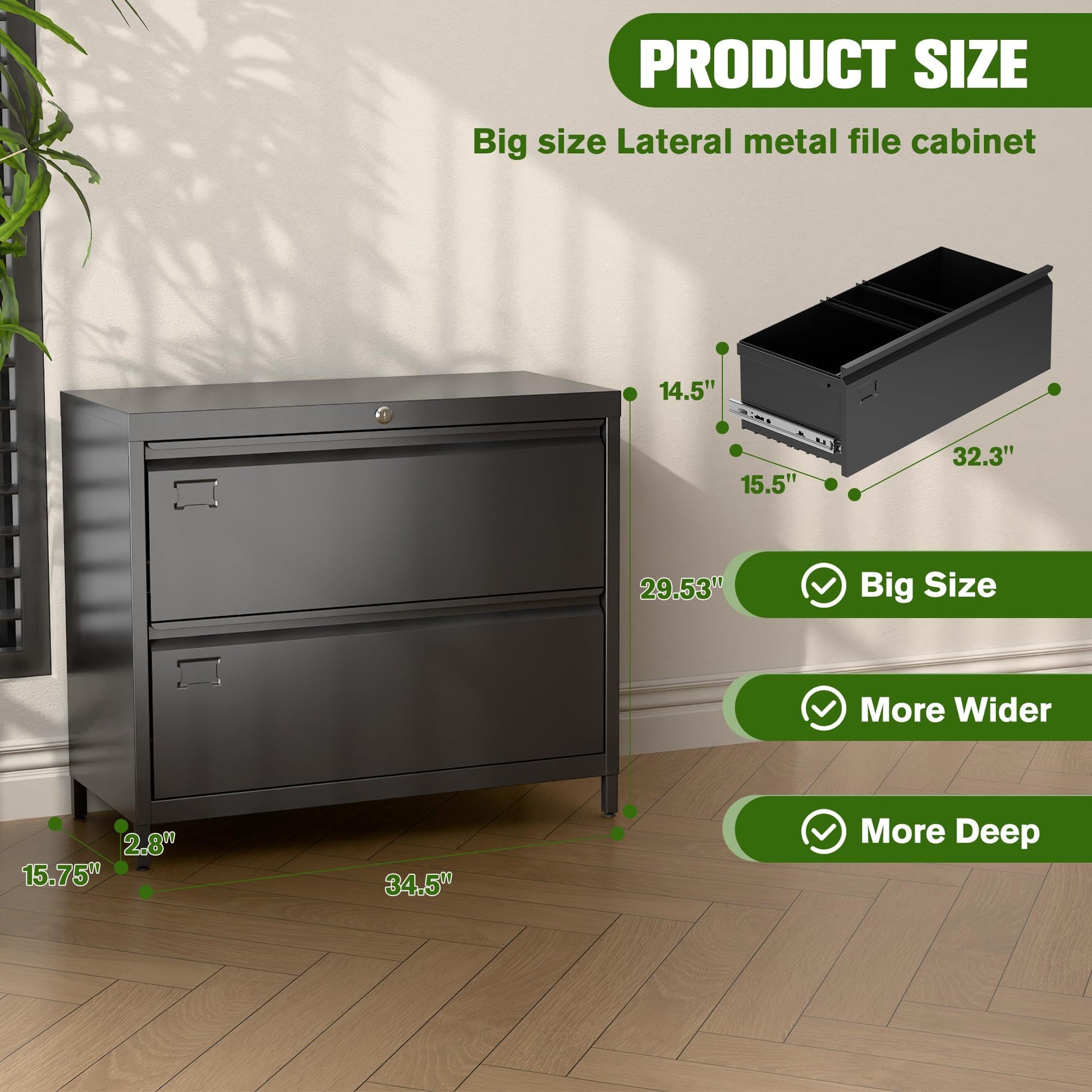 US Local Lateral File Cabinet With 2 Drawer,Metal Wide Filing Cabinet With Lock And Business Card Slot For Home Office School Hanging Letter,Legal,F4,A4 Size Folders,Required Assembly,Black