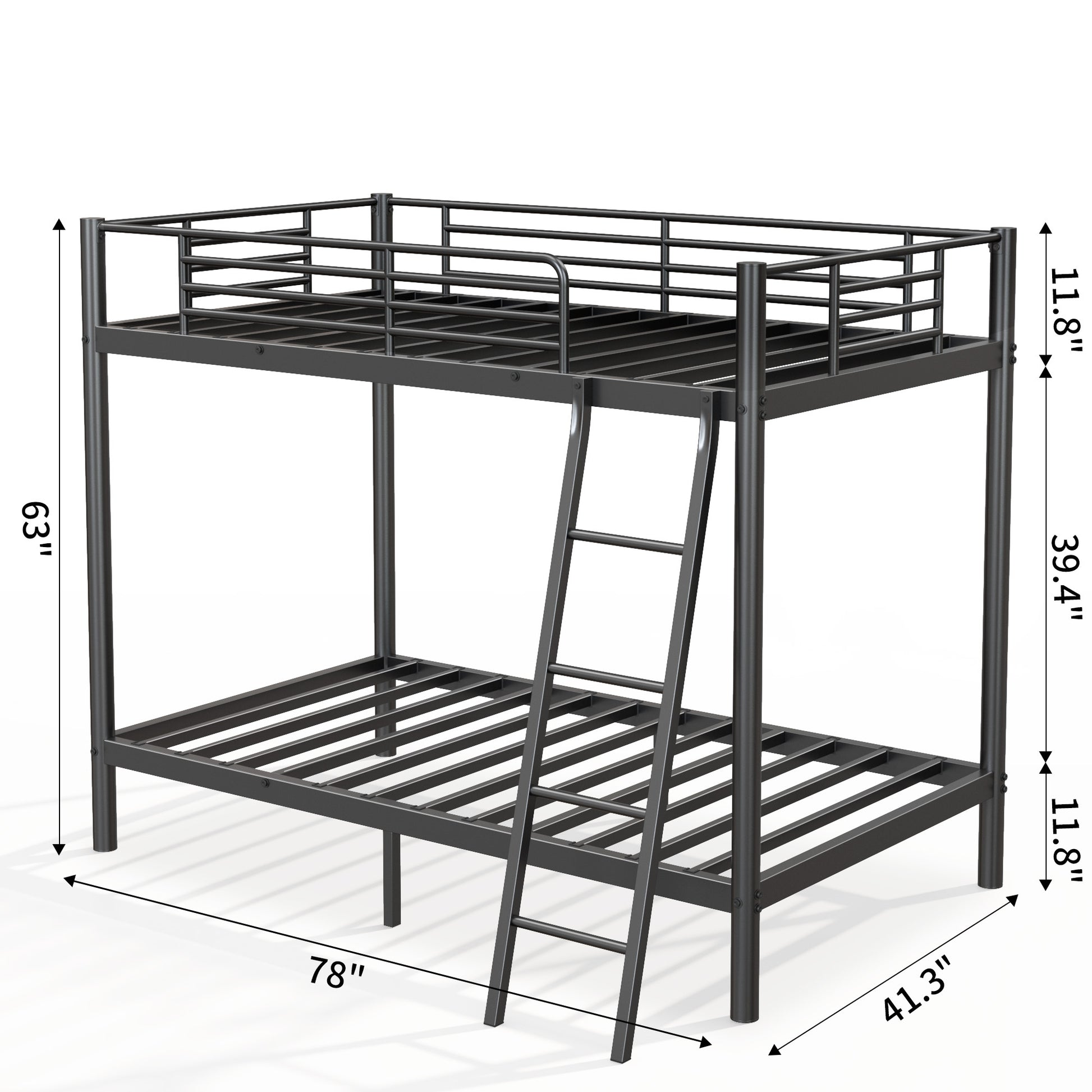 US Local Loft Bunk Bed Twin Over Twin Size With Ladder And Guardrail,Heavy Duty Metal Slats Support No Box Spring Needed Small Space Saving Furniture For Bedroom Dorm,Black