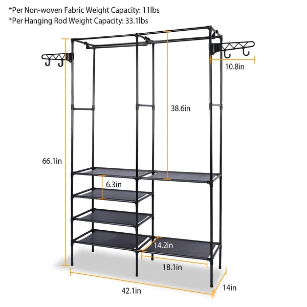 Per Hanging Rod Weight Capacity: 15kg/33.1lbs