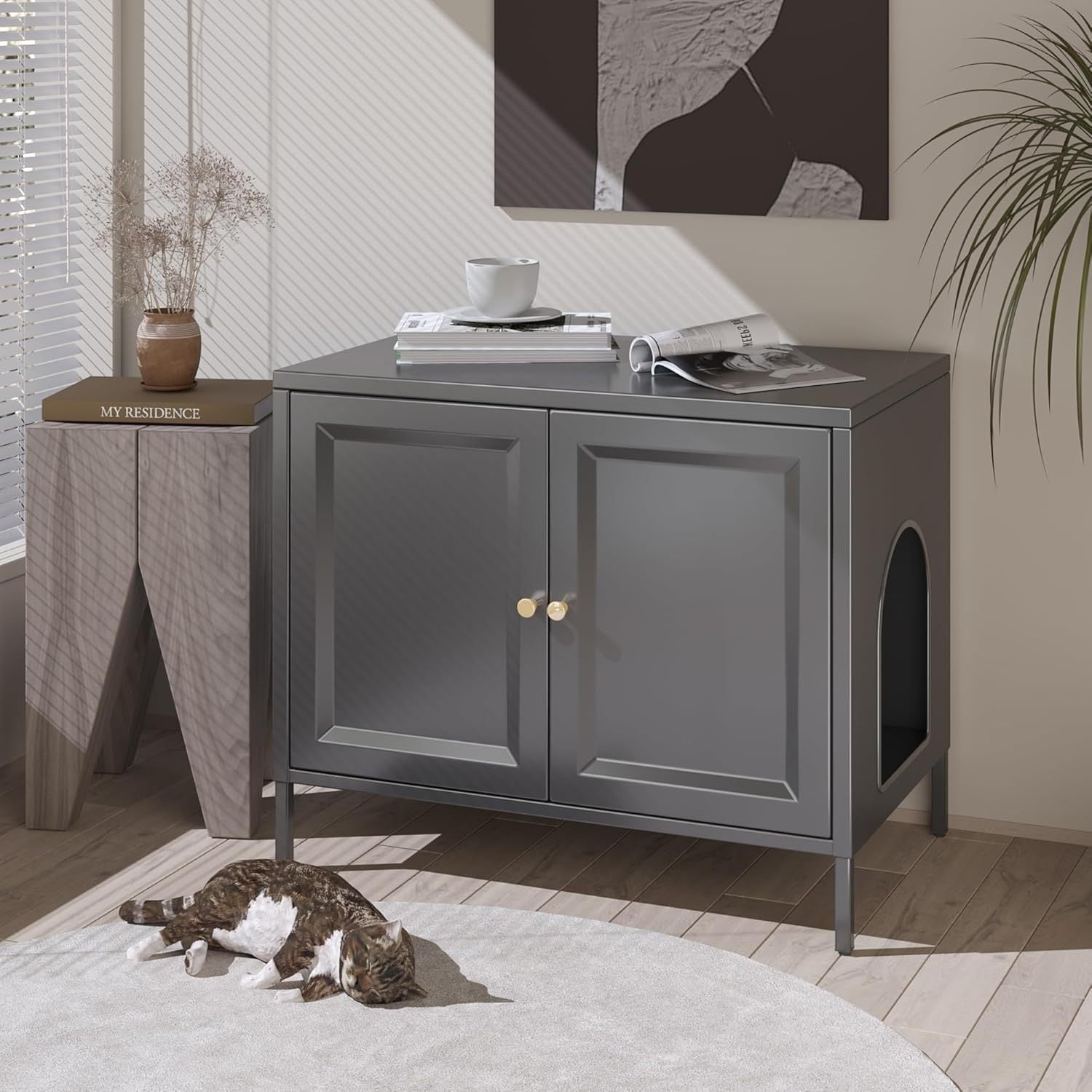 - Fits Most OF Litter Boxes: Sized 31.5¡± Wx 20¡± D x 26¡± H, The cat furniture is big enough for most of litter box and avoid litter scattering