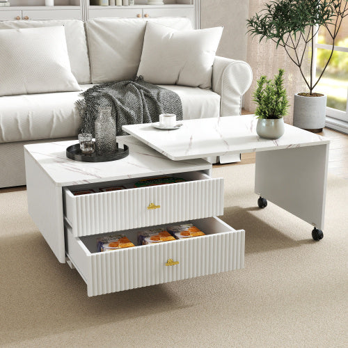 Product Name:Extendable Coffee Table with Storage, Reversible Living Room Table with 2 Drawers and with 6 Wheels, White
