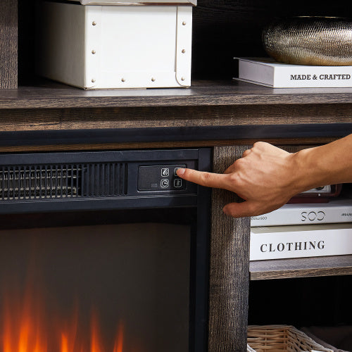 Product Name:Modern Entertainment Console TV Stand with 23" Fireplace Insert, Multipurpose Sliding Door TV Cabinet Large Storage Space, 58.11"W*15.79"D*32.36"H Antique brown