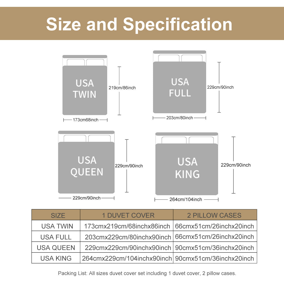 Package Included: 1 Size Duvet cover (comforter not included) and two pillow shams