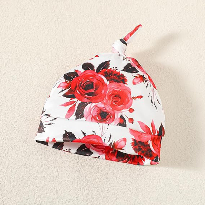 Complete 4-Piece Set : Includes romper, floral pants, matching hat, and headband for a fully coordinated look.