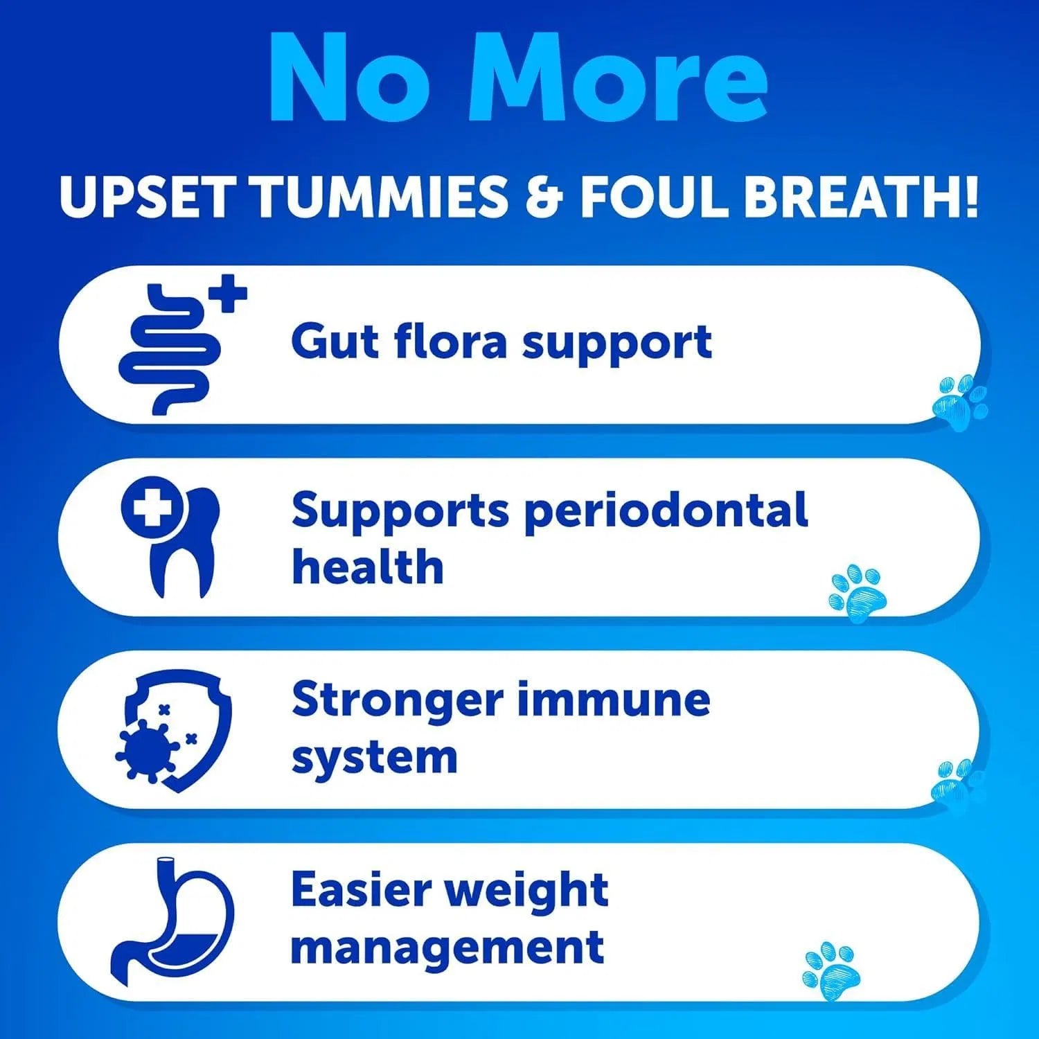 - gut health support: chews help with bad breath & bowel health. our chewable treats help with no poop eating for dogs & aid with digestion, so your pup stays happy & healthy.