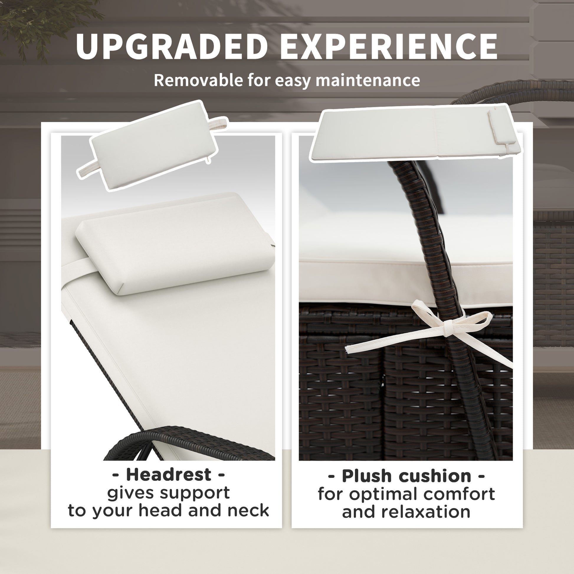 Outdoor Chaise Lounge, 5-Level Adjustable Backrest Rattan Pool Lounge Chair With Wheels, Cushion & Headrest, Cream
