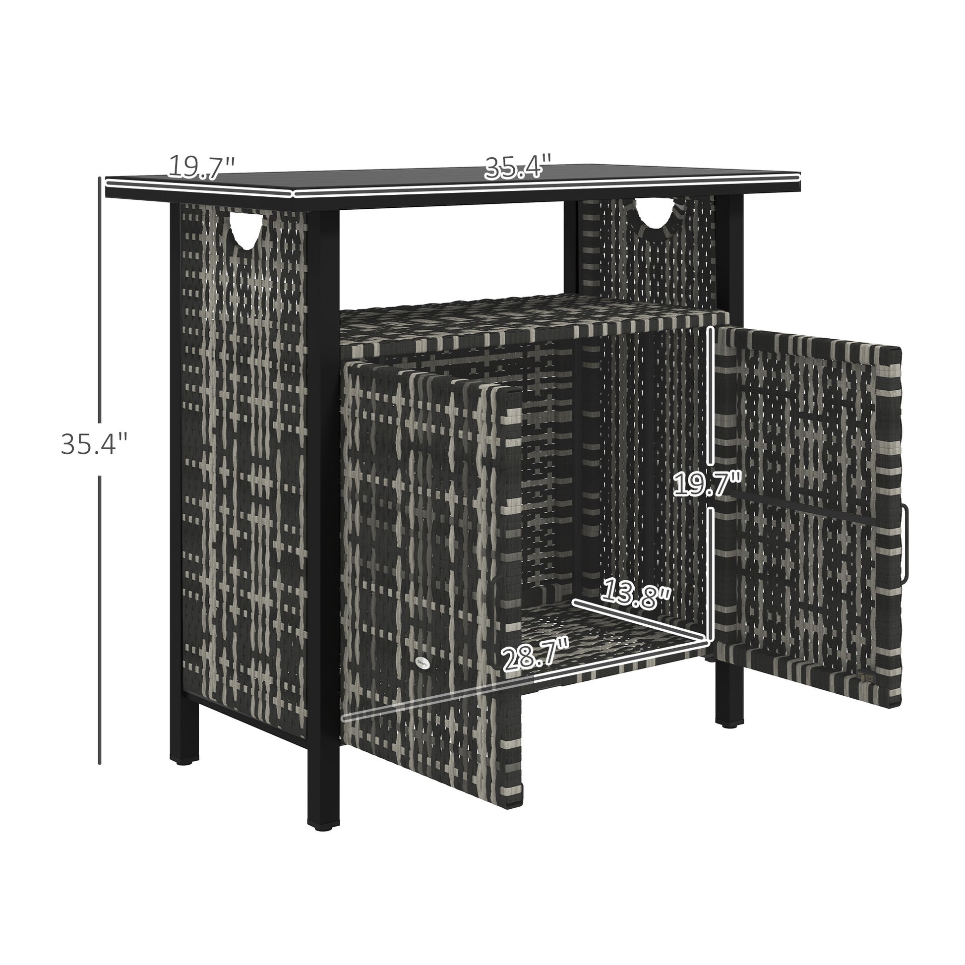 Outdoor Pool Towel Storage Cabinet Organizer, Outdoor Bar Table With Shelf And Cabinet, Pool Towel Holder Pool Valet With Weather-Resistant PE Rattan And Steel Frame, Mixed-Gray