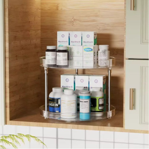 US Local Pack Of 2 Double-layer Turntable Rotating Spice Rack Organization Spinning Organizer