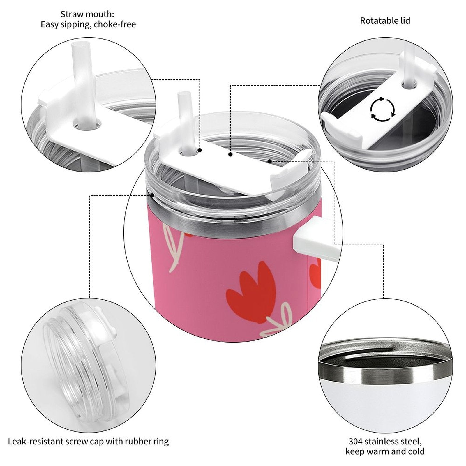 PHDT00058 POD US Local Tumbler 40 oz Large Capacity Car Cup Tulip, Red, Flower