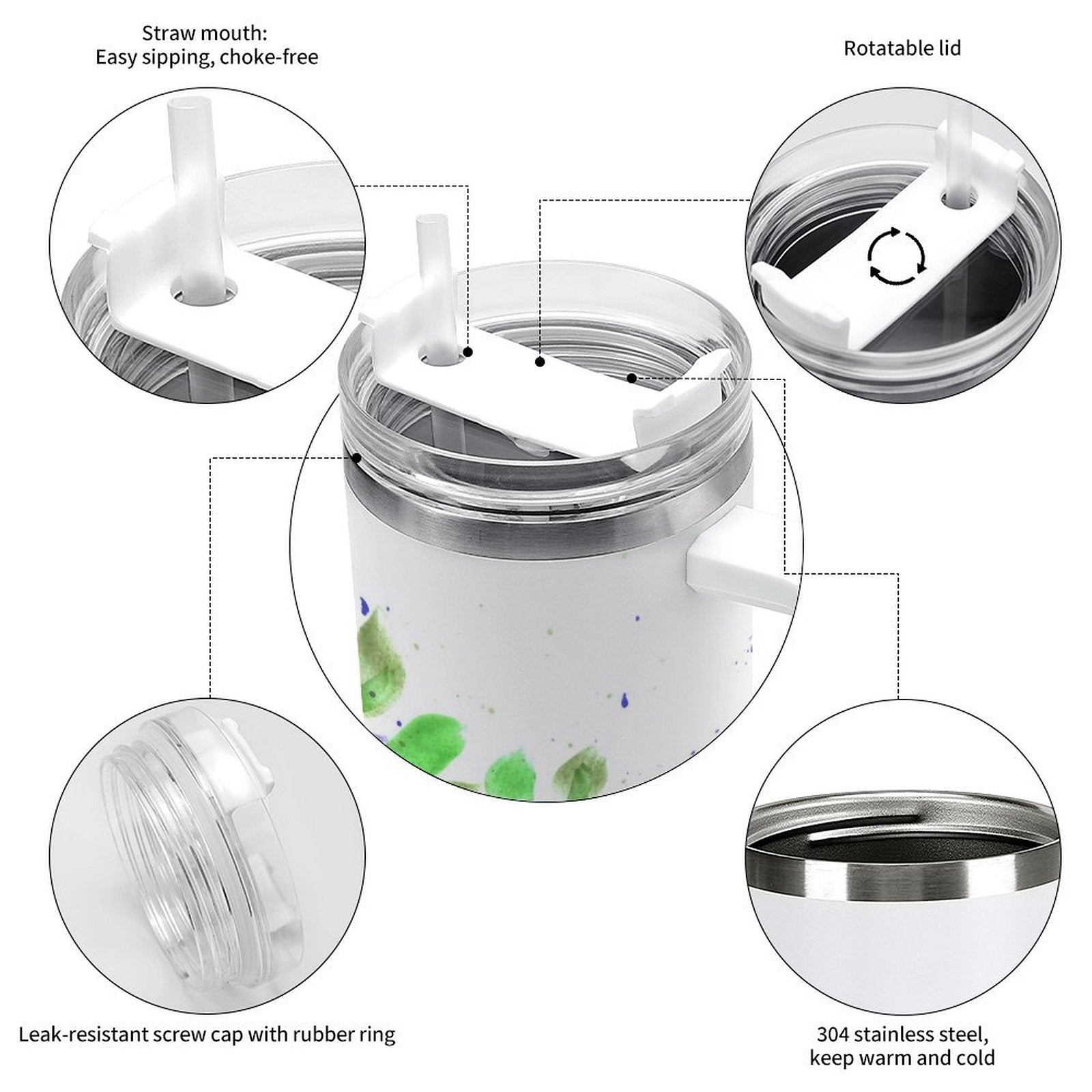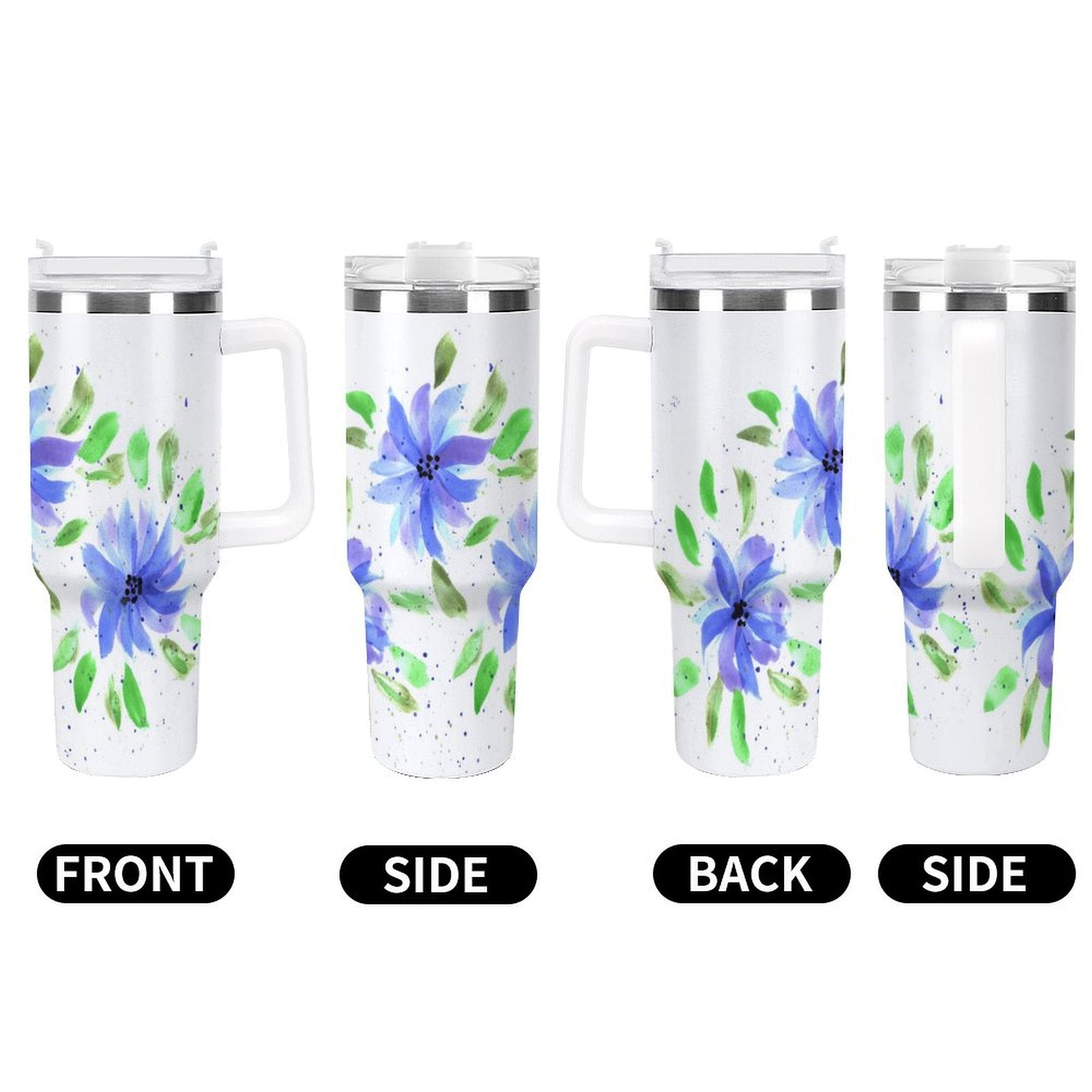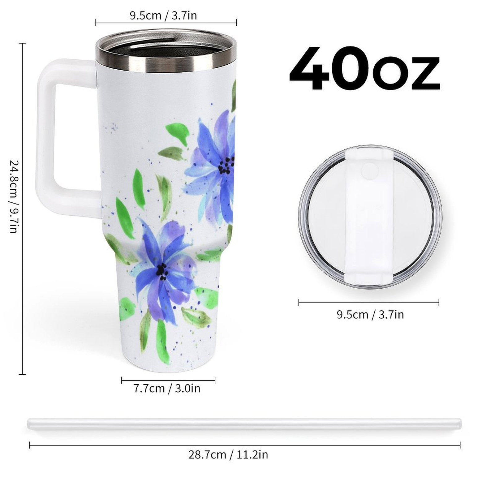 PHDT00144 POD US Local Tumbler 40 oz Large Capacity Car Cup Watercolor, Blue Flowers, Green Leaves