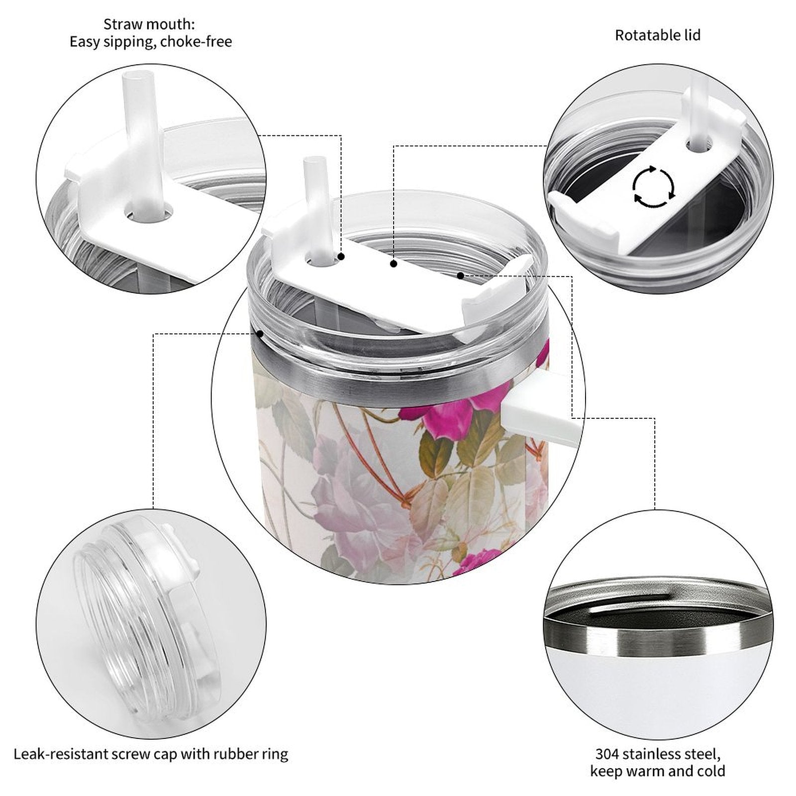 PHDT00196 POD US Local Tumbler 40 oz Large Capacity Car Cup Roses