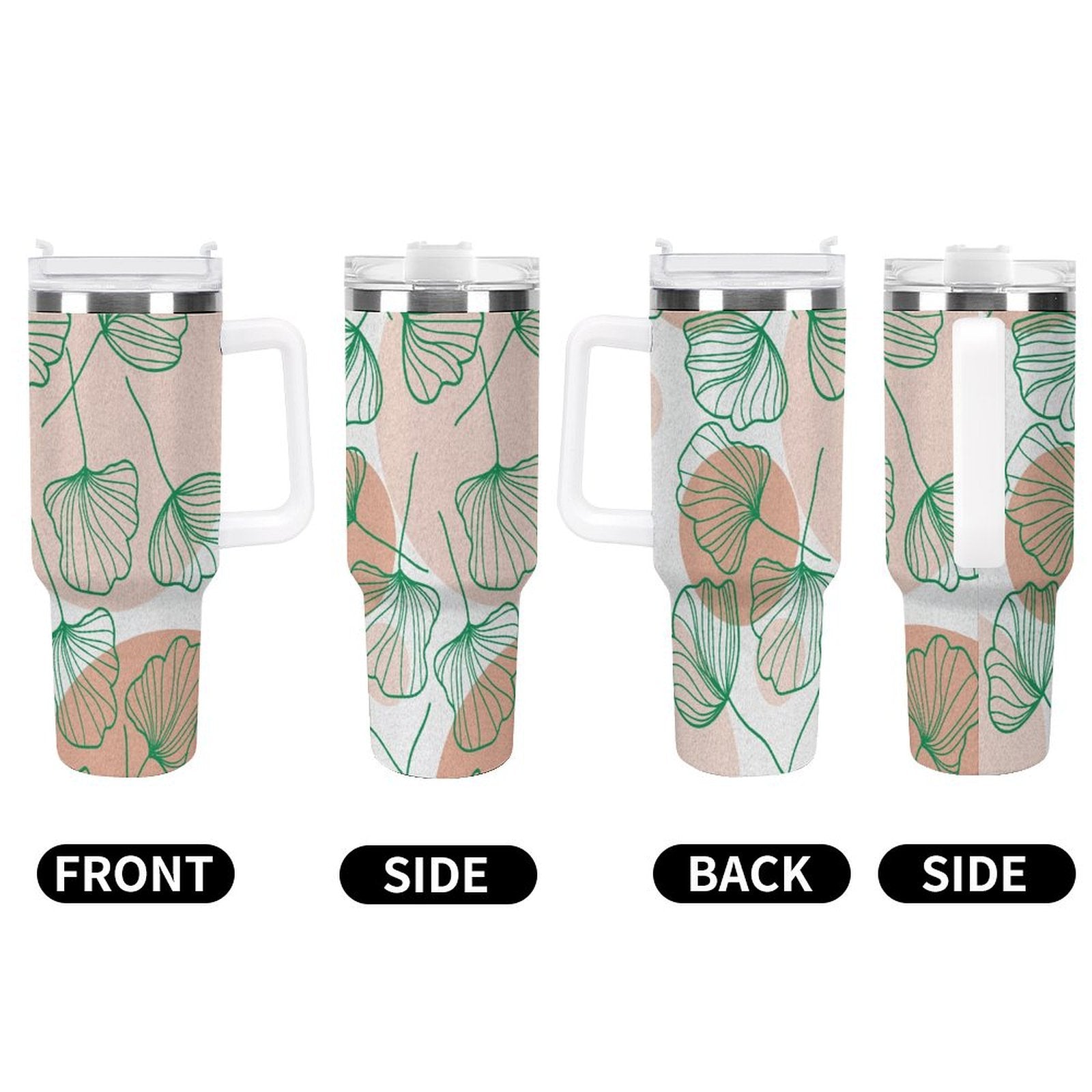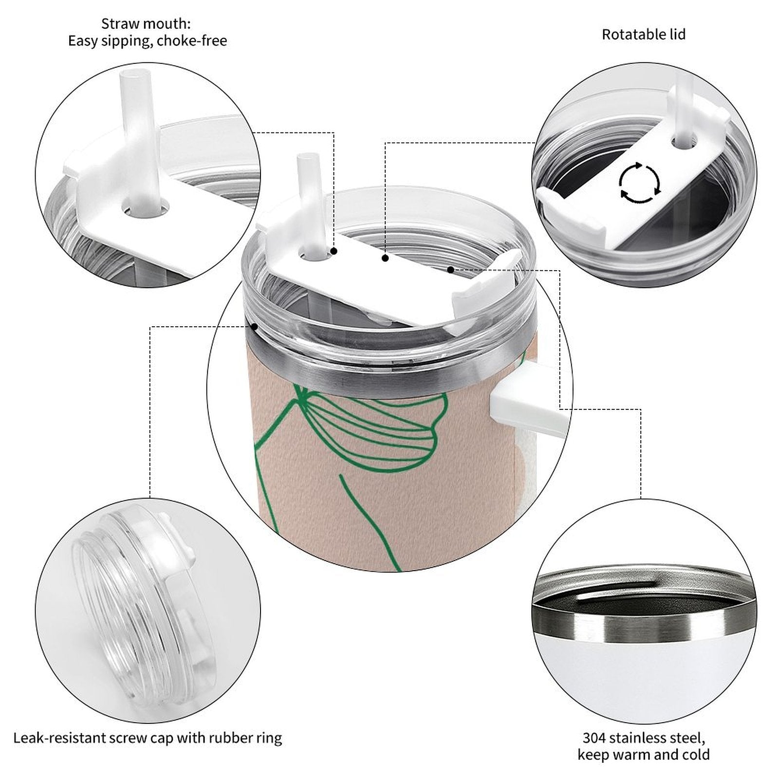 PHDT00212 POD US Local Tumbler 40oz Large Capacity Car Cup Green Leaves, Lines