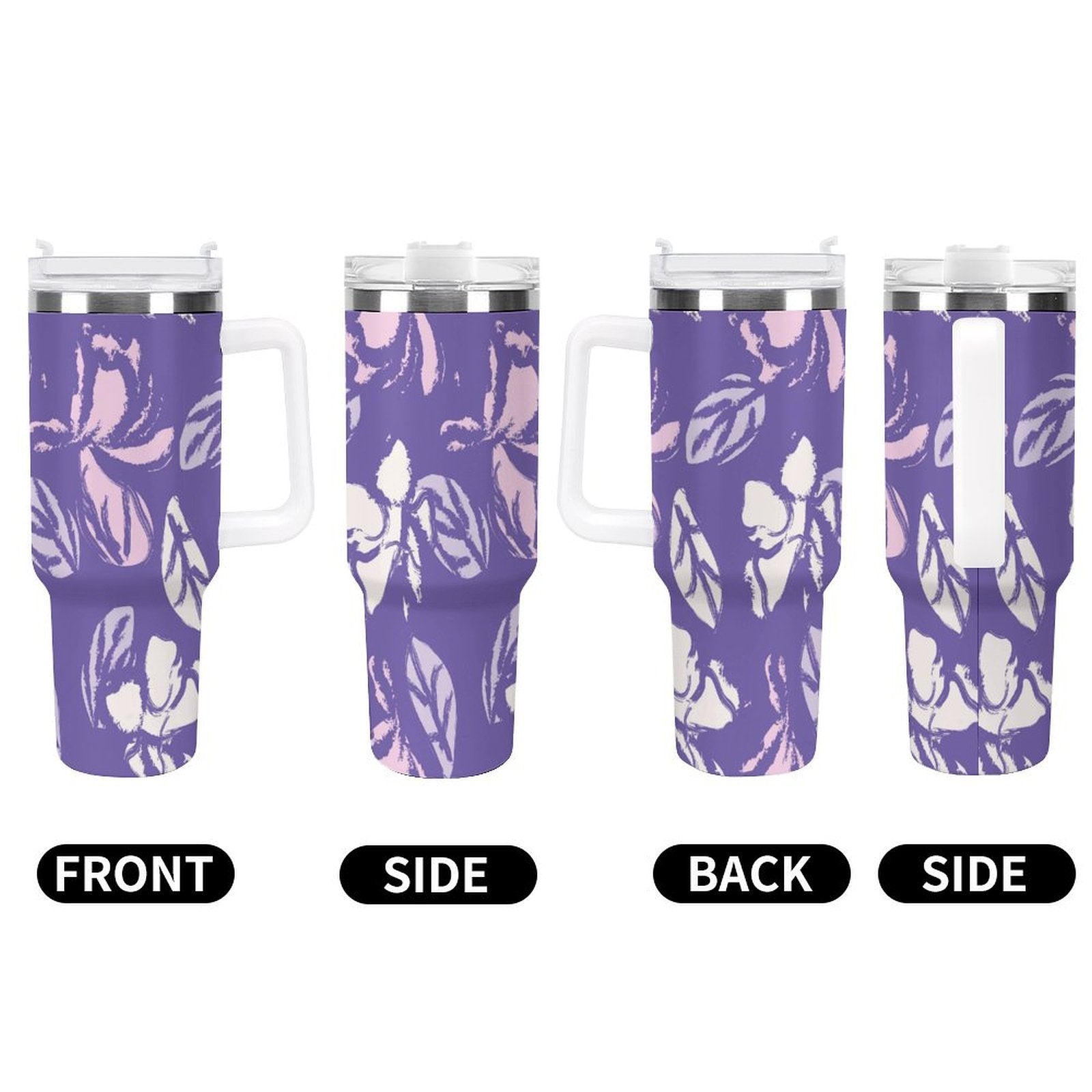 PHDT00216 POD US Local Tumbler 40oz Large Capacity Car Cup Oil Painting Flowers Purple