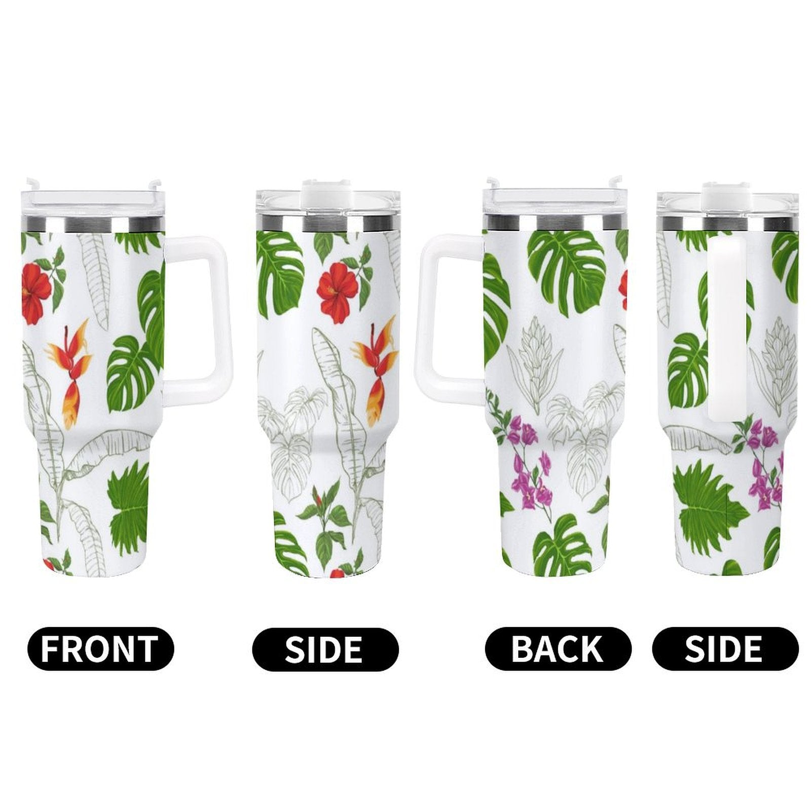 PHDT00219 POD US Local Tumbler 40oz Large Capacity Car Cup Tropical, Flower, Leaf