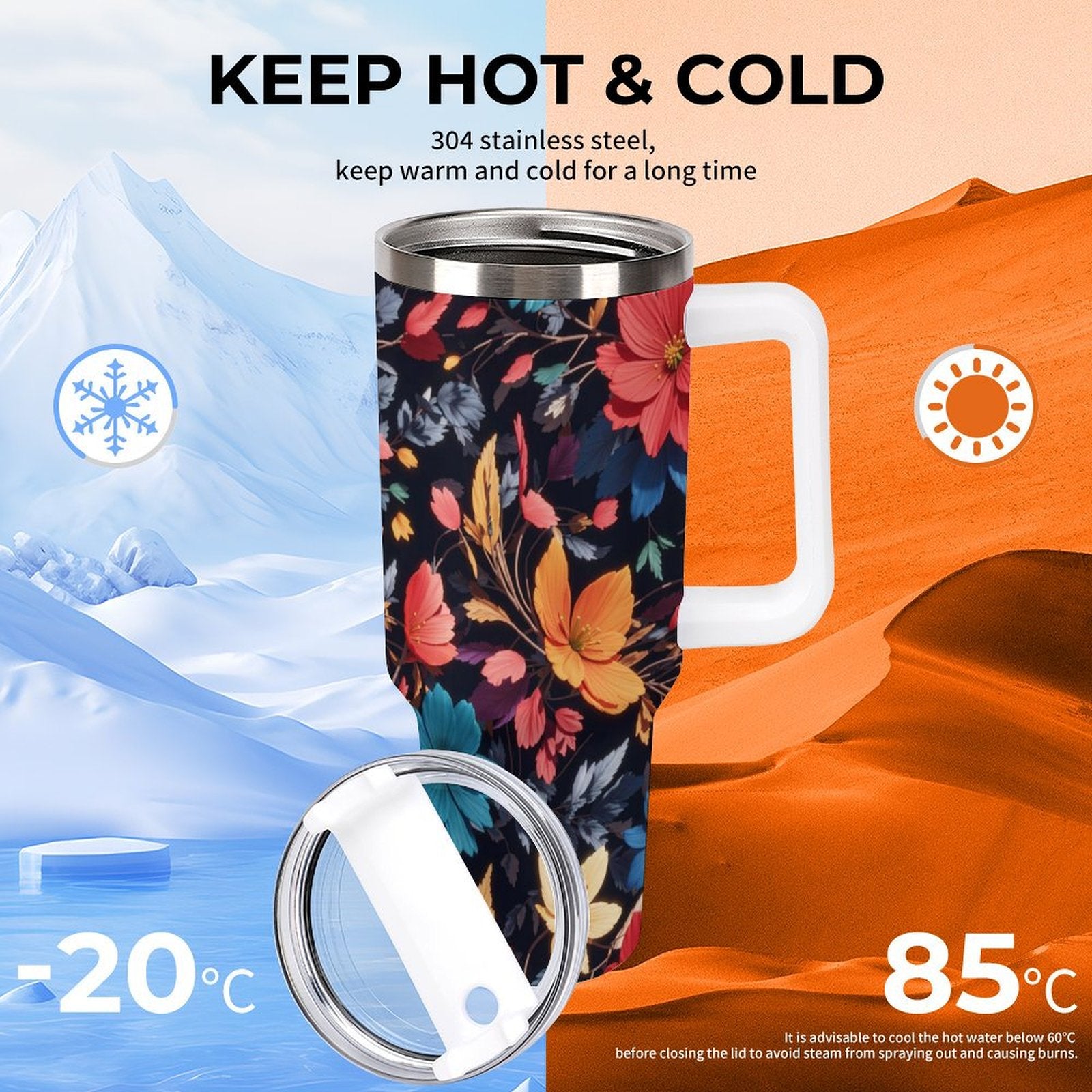 PHDT00222 POD US Local Tumbler 40 oz Large Capacity Car Cup 3D, Stereoscopic, Flower