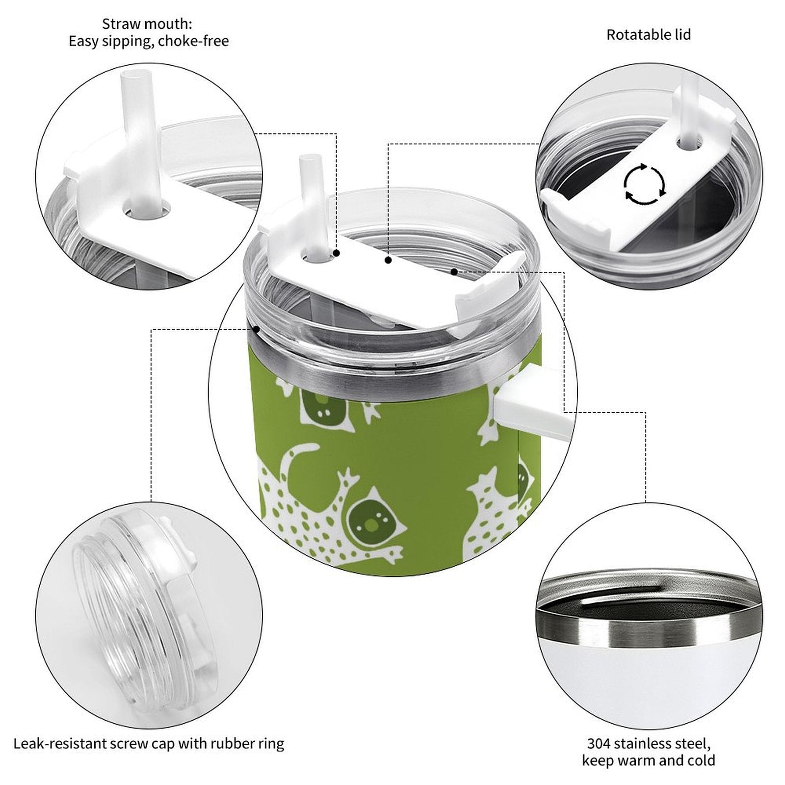 PHDT00223 POD US Local Tumbler 40 oz Large Capacity Car Cup Abstract, Cat, Green