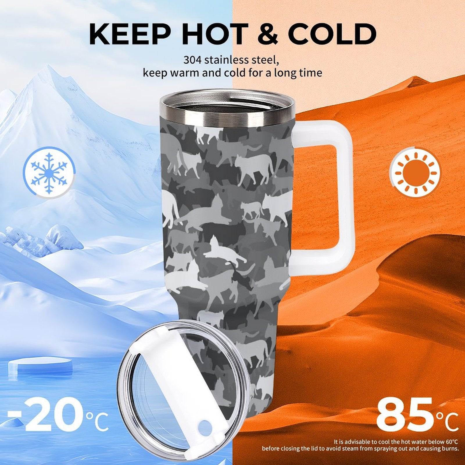 PHDT00238 POD US Local Tumbler 40 oz Large Capacity Car Cup Camouflage Cat Animal
