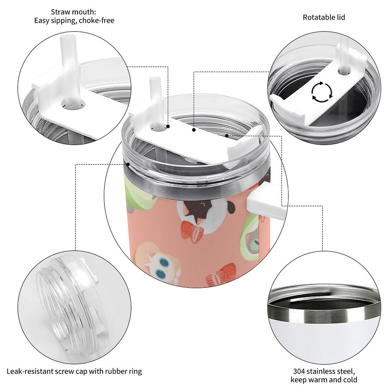 PHDT00261 POD US Local Tumbler 40 oz Large Capacity Car Cup Cat dessert pink green black