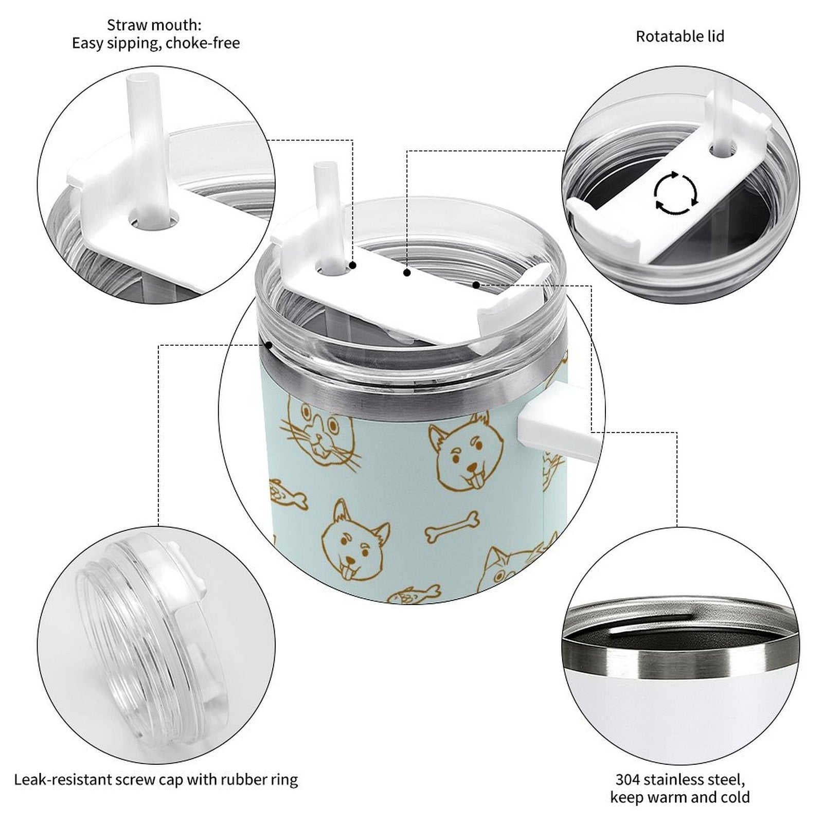 PHDT00262 POD US Local Tumbler 40 oz Large Capacity Car Cup Cat Dog Fish Bones Pets Green