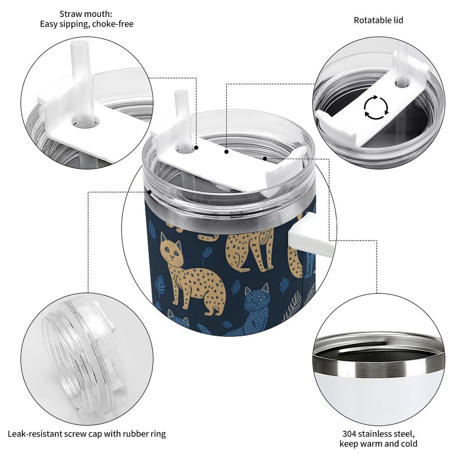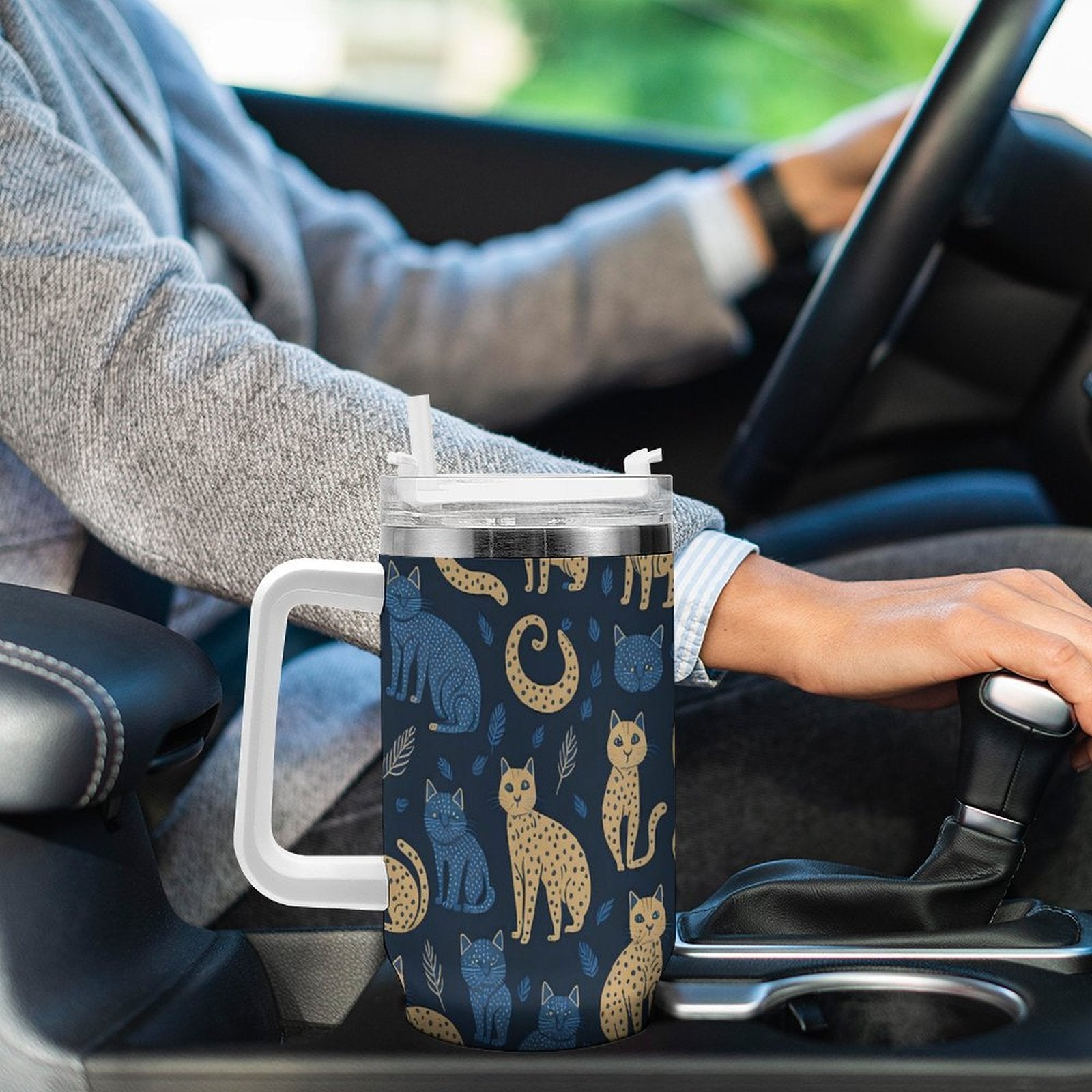 PHDT00271 POD US Local Tumbler 40 oz Large Capacity Car Cup Cat, Yellow, Black, Blue
