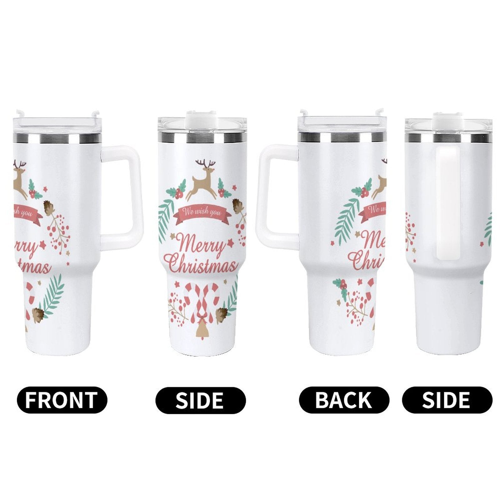 PHDT00307 POD US Local Tumbler 40 oz Large Capacity Car Cup Christmas Reindeer Bell Plant Red Green
