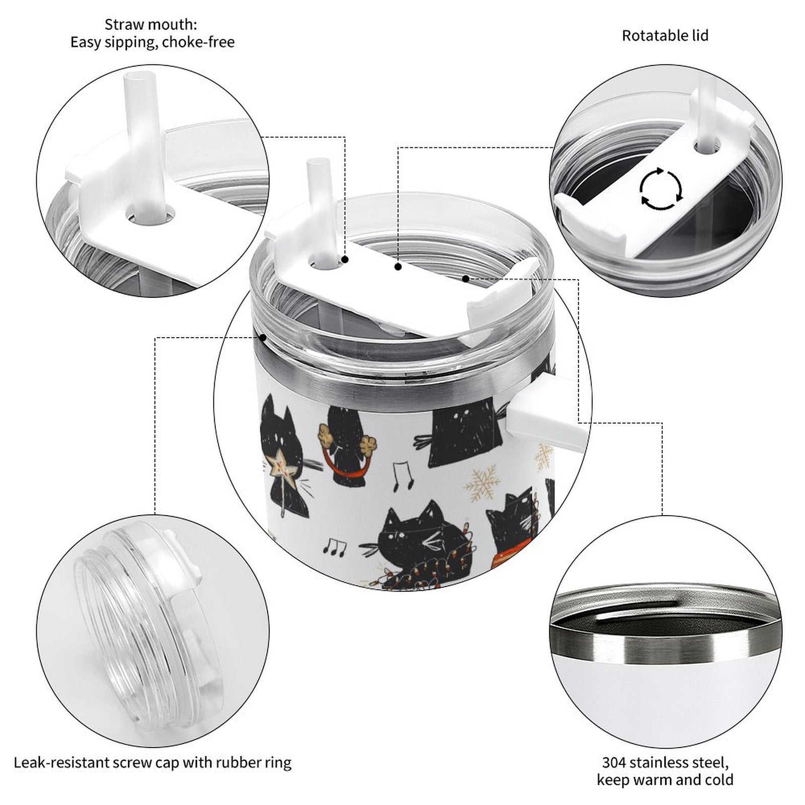 PHDT00331 POD US Local Tumbler 40 oz Large Capacity Car Cup Christmas, Black Cat