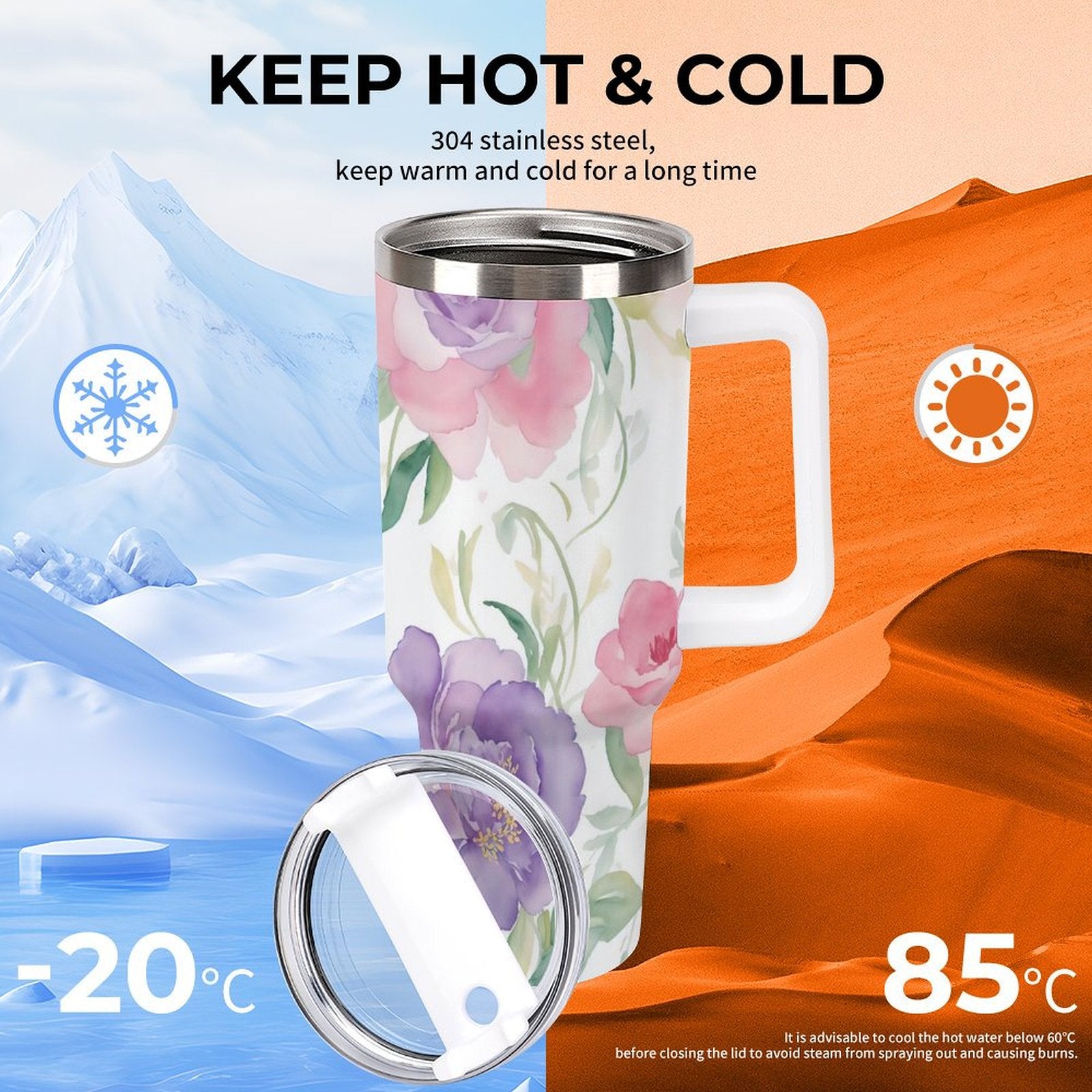 PHDT00420 POD US Local Tumbler 40 oz Large Capacity Car Cup Peony, Pink, Purple, Orange, Watercolor