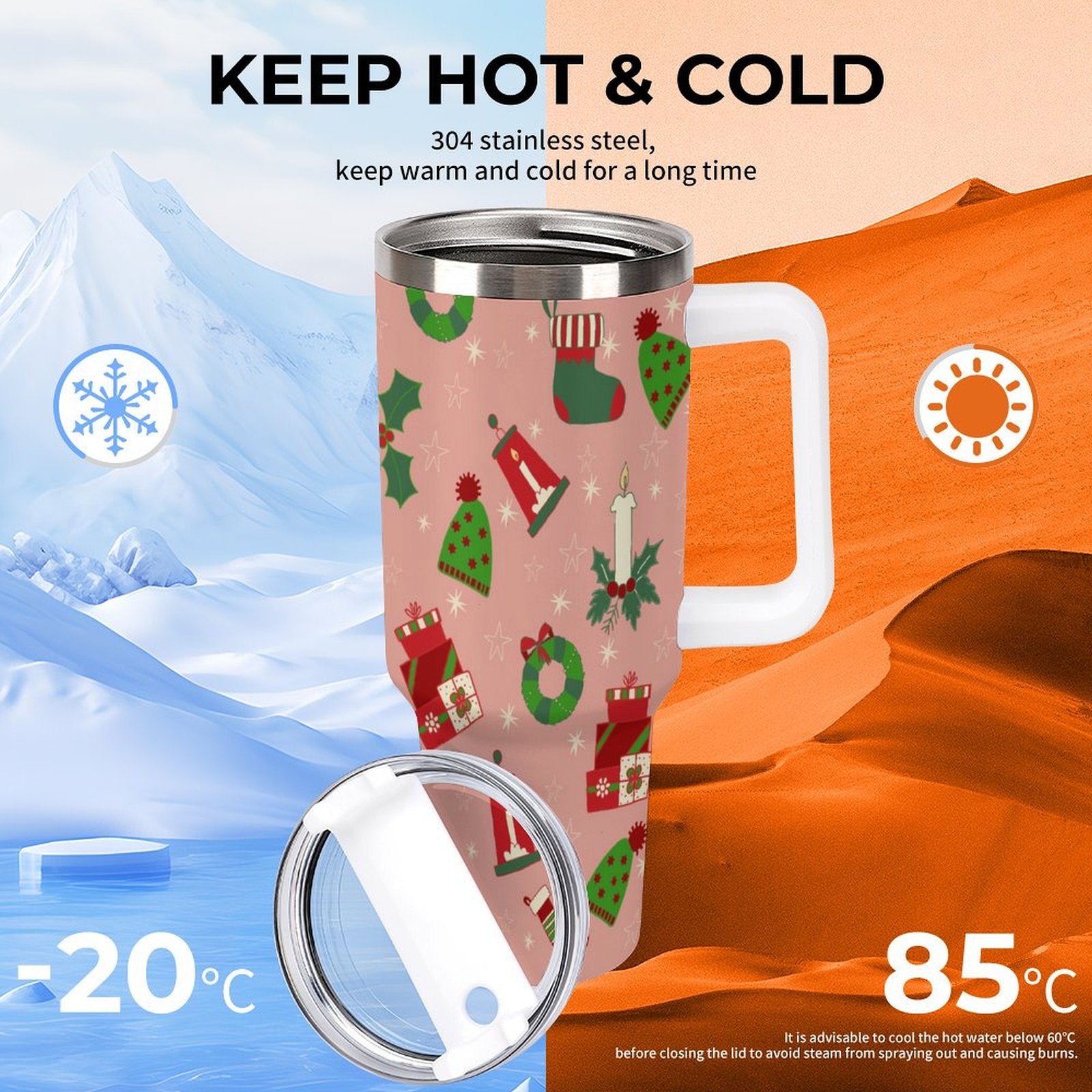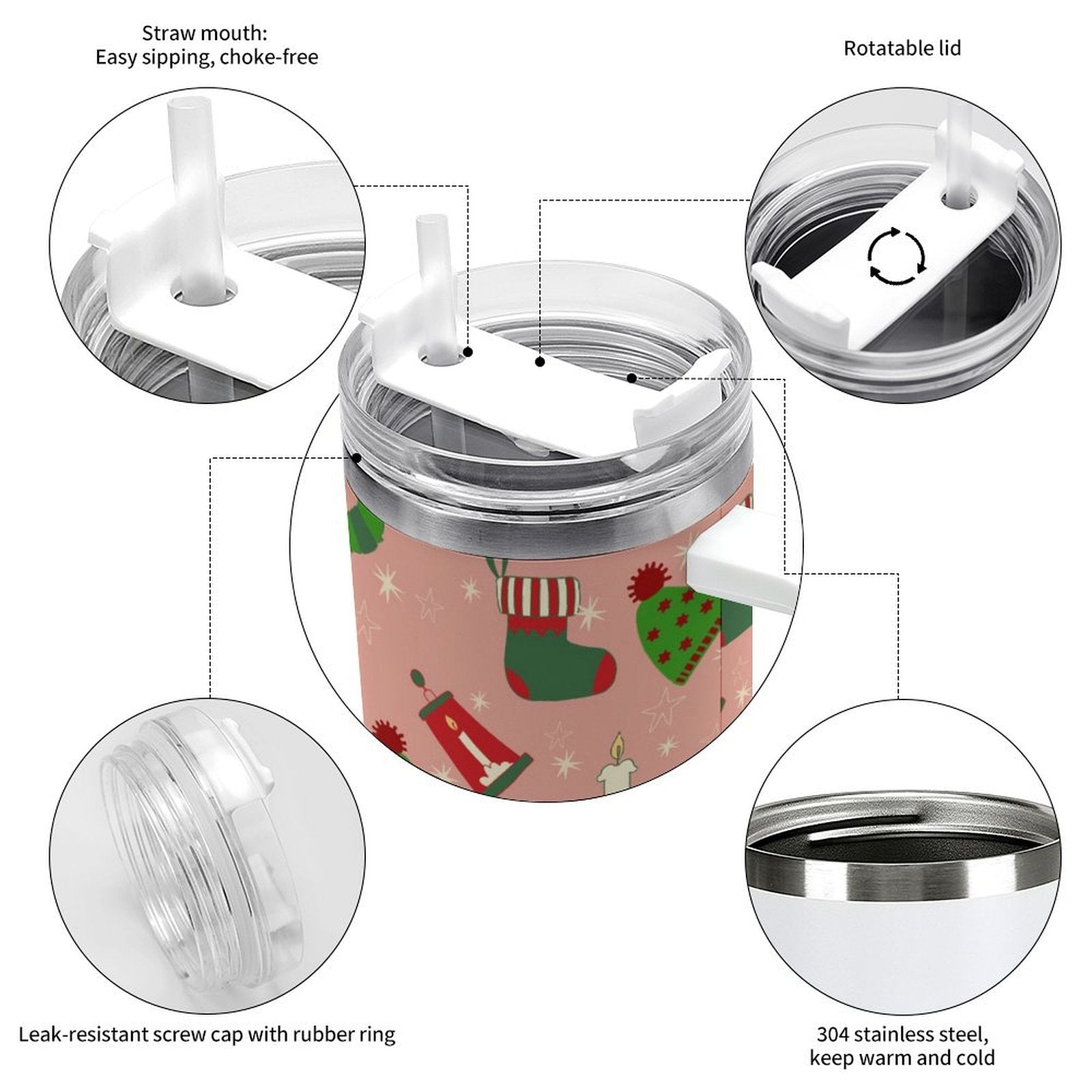 PHDT00426 POD US Local Tumbler 40 oz Large Capacity Car Cup Pink, Christmas