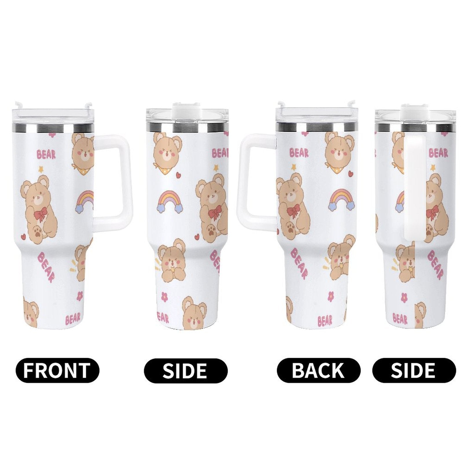 PHDT00513 POD US Local Tumbler 40oz Large Capacity Car Cup Cute, Teddy Bear, Happy