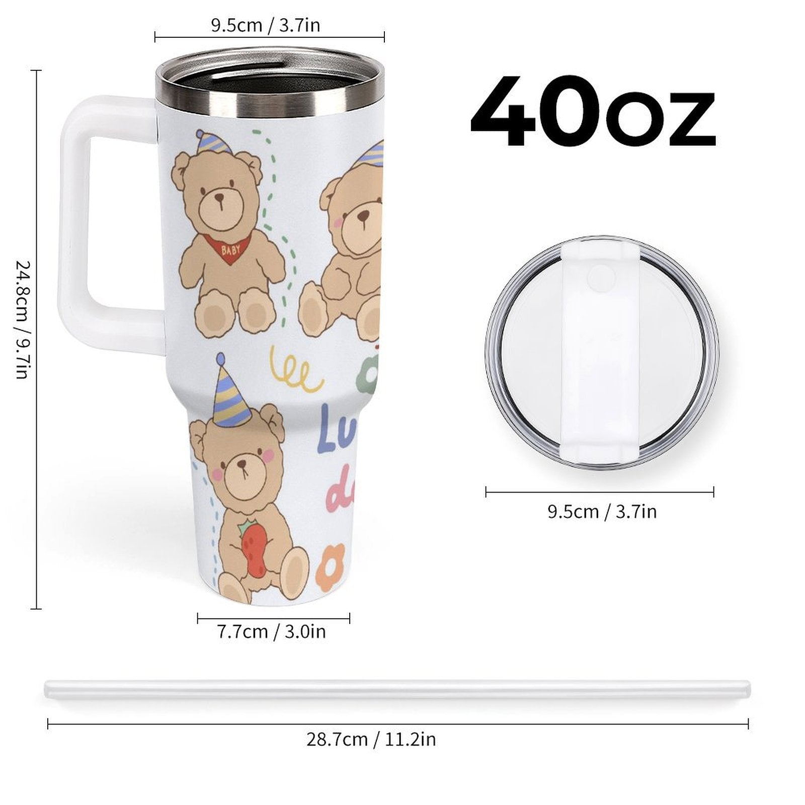 PHDT00516 POD US Local Tumbler 40oz Large Capacity Car Cup Teddy Bear, Lucky Day, Ice Cream