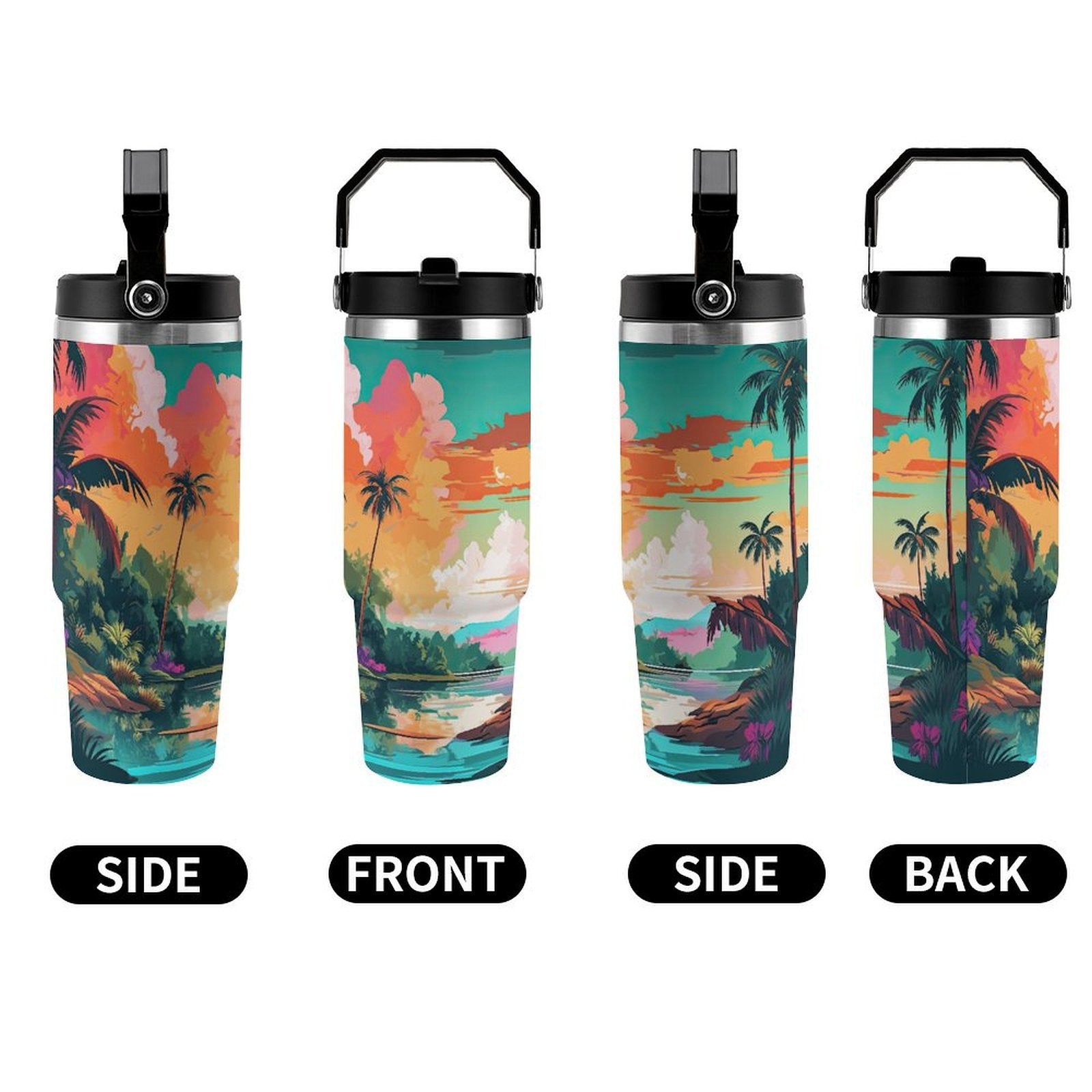 POD US Local Tumbler 30oz Large Capacity Car Cup Tropical, Island, Scenery Style