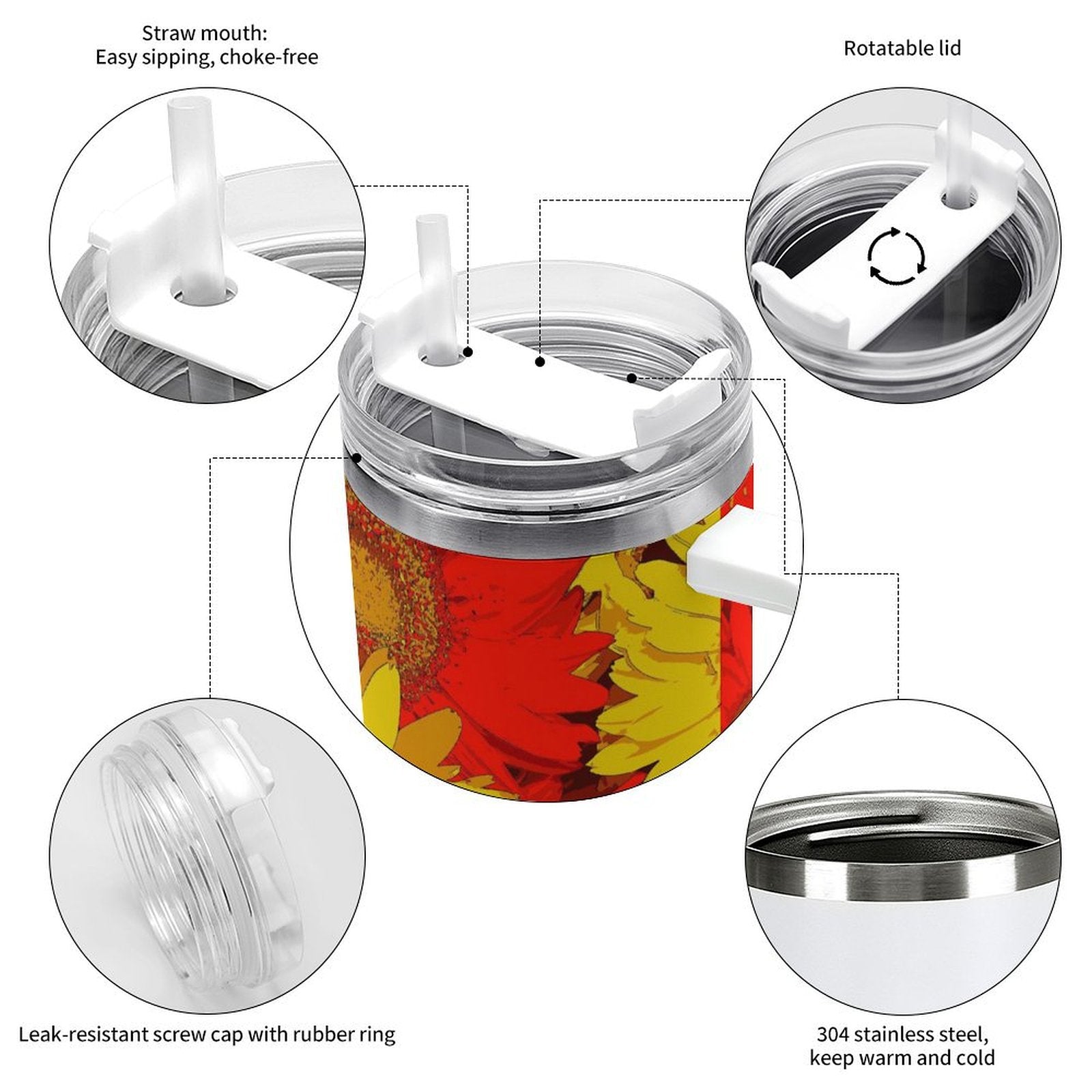 PHDT00354 POD US Local Tumbler 40 oz Large Capacity Car Cup Daisies, Big Flowers
