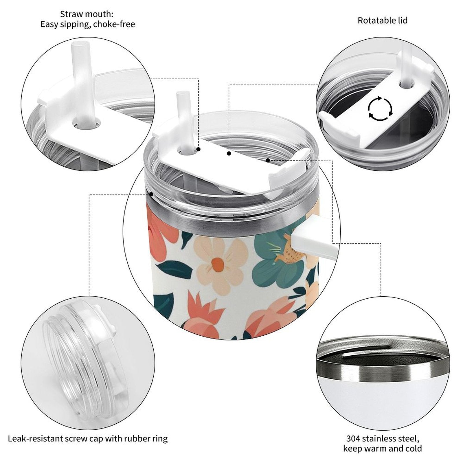 PHDT00367 POD US Local Tumbler 40 oz Large Capacity Car Cup Flower, Retro, Autumn