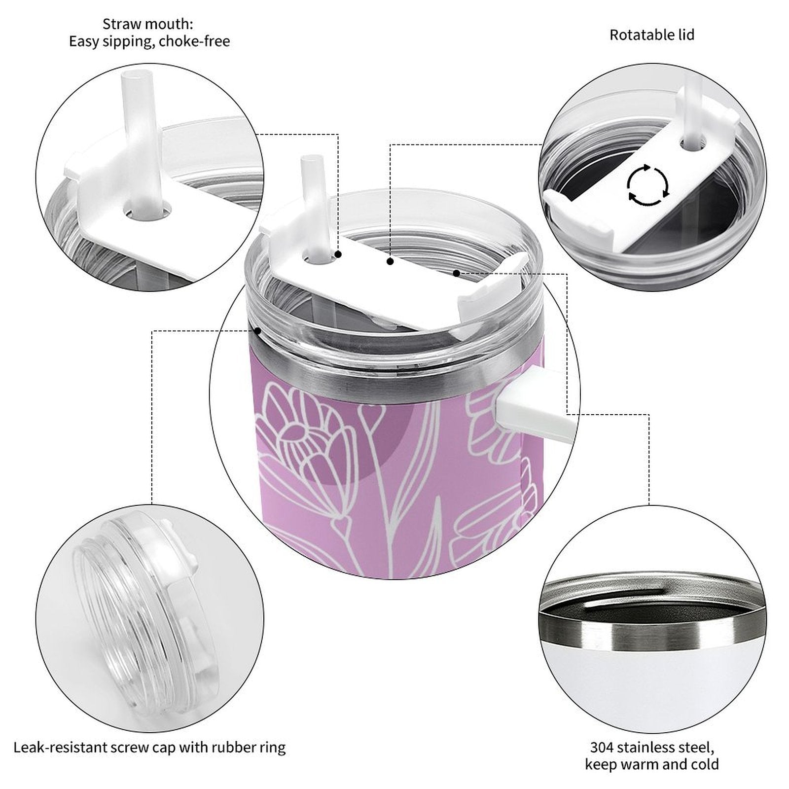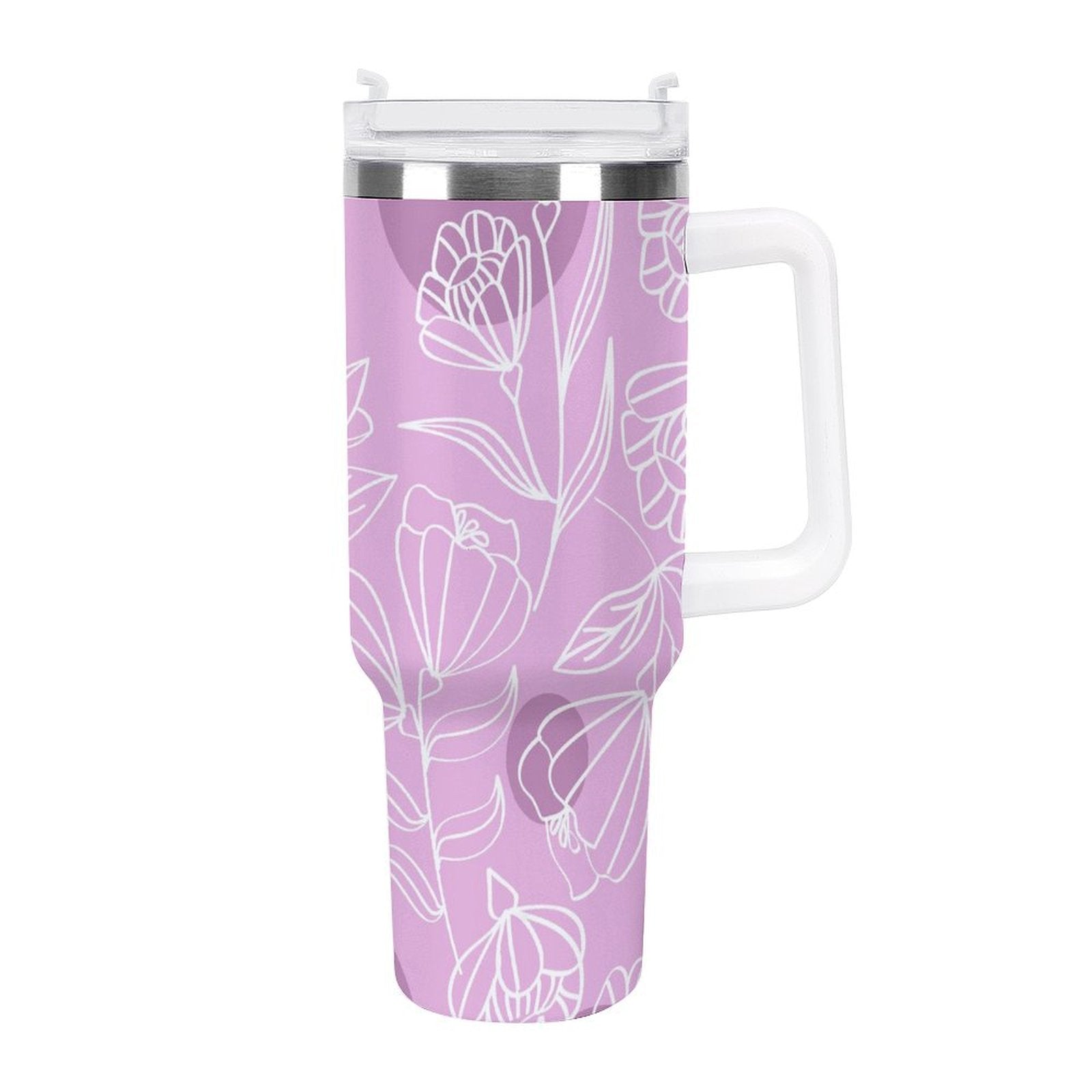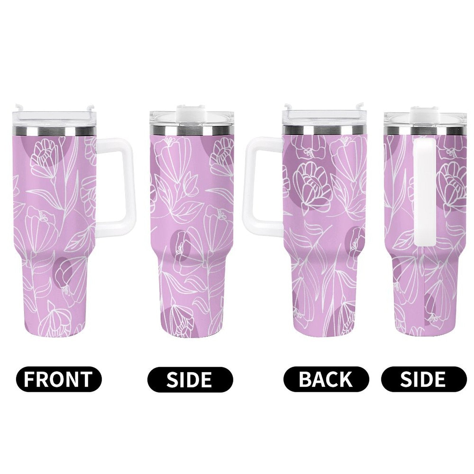 PHDT00373 POD US Local Tumbler 40 oz Large Capacity Car Cup Flowers, Pink Purple, Carving
