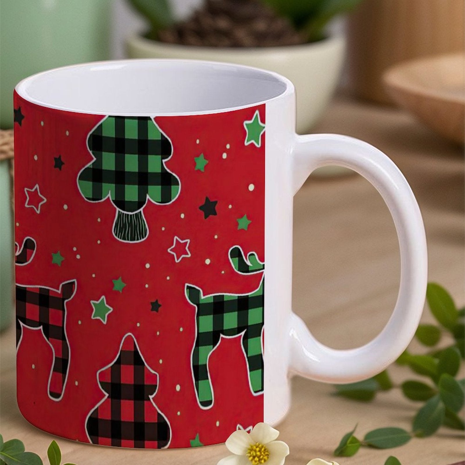 POD US Local White mug with full print, Christmas Elk 0090