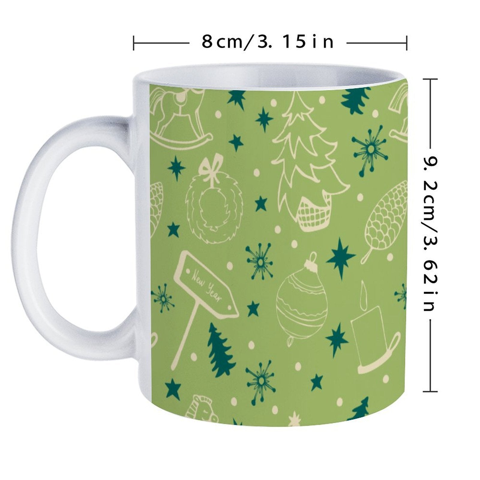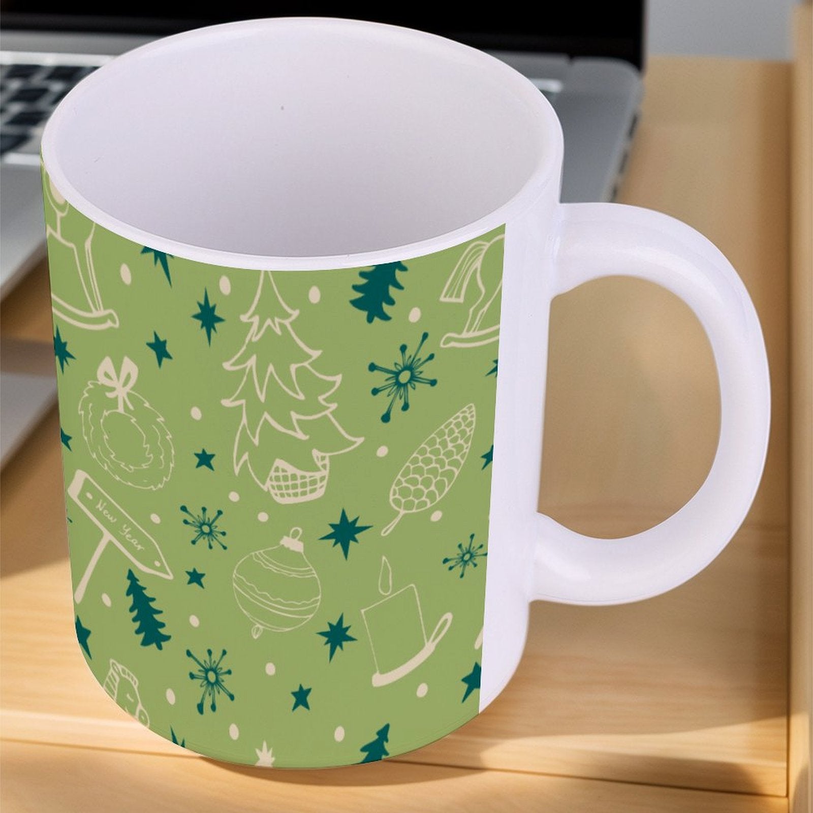 POD US Local White mug with full print, Christmas Trees, New Year, Trojans, Pinecones 0084