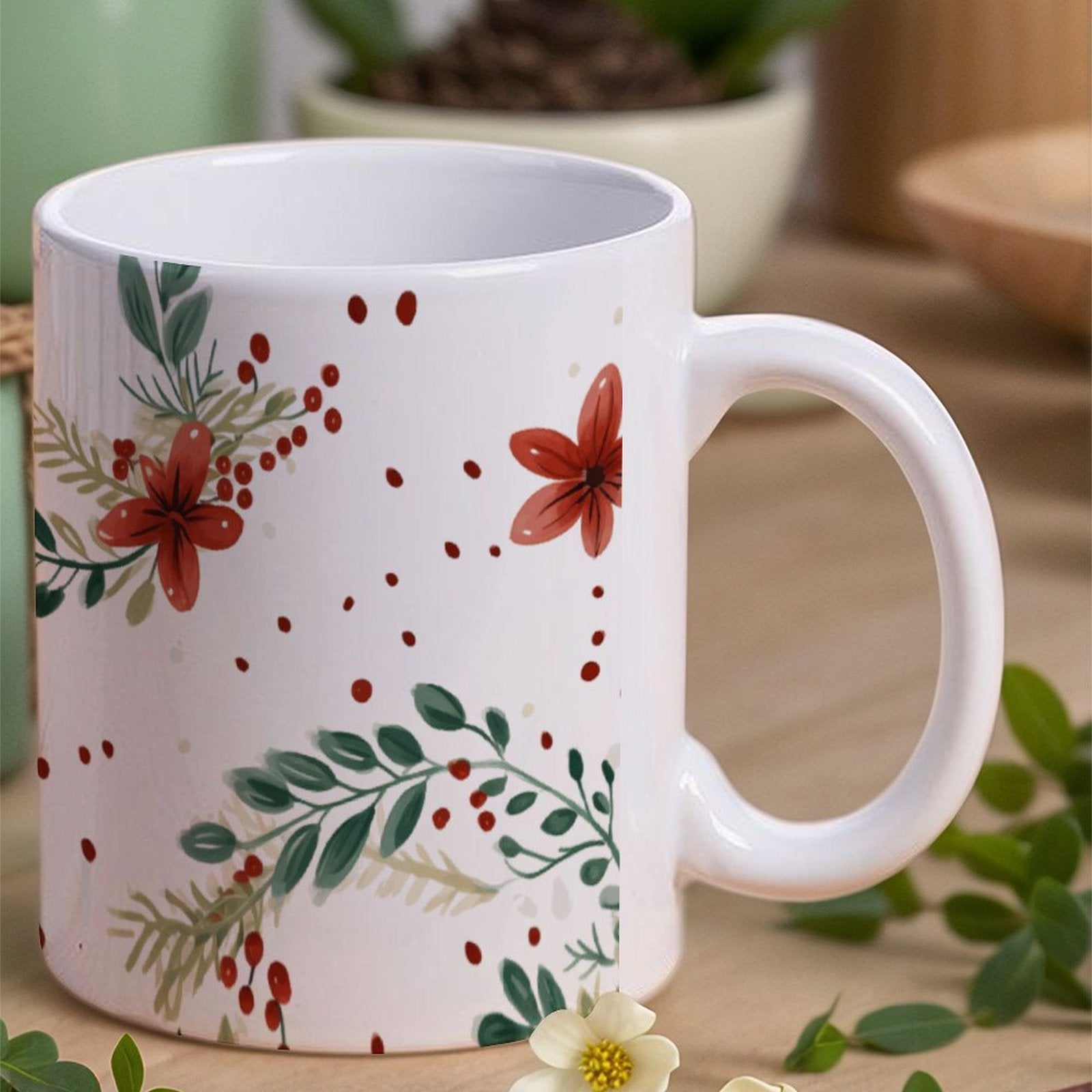 POD US Local White mug with full print, Christmas, Wreaths 0092