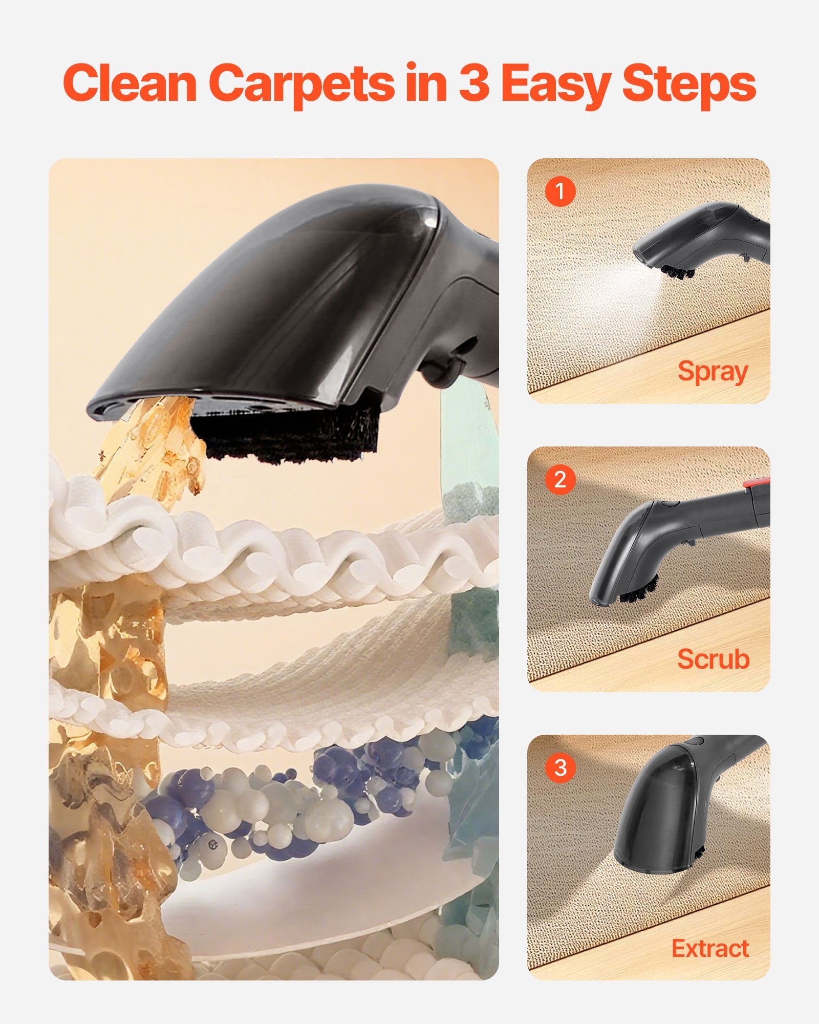 US Local Portable Carpet Cleaner Machine Dual-Water Tank 11.5Kpa Upholstery Cleaner