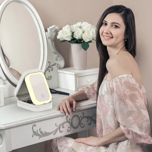 US Local Portable Travel Makeup Bag With LED Mirror Rechargeable Beauty Mirror With 3 Color