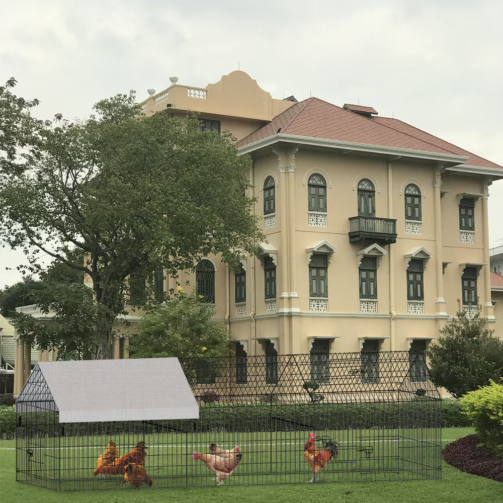 Product SpecificationsProduct InformationProduct Name: Poultry farming outdoor metal chicken coopProduct Specifications: General itemProduct Number: S05600003UPC:Product Type: General itemCountry of Origin: ChinaMain Color: Black GrayMain Material: Fabric MetalProduct DimensionsAssembled Length (inches): 130Assembled Width (inches): 40Assembled Height (inches): 40Assembled Weight (pounds): 45.05Packaging DimensionsLength (inches): 45Width (inches): 27Height (inches): 4Weight (pounds): 48Description