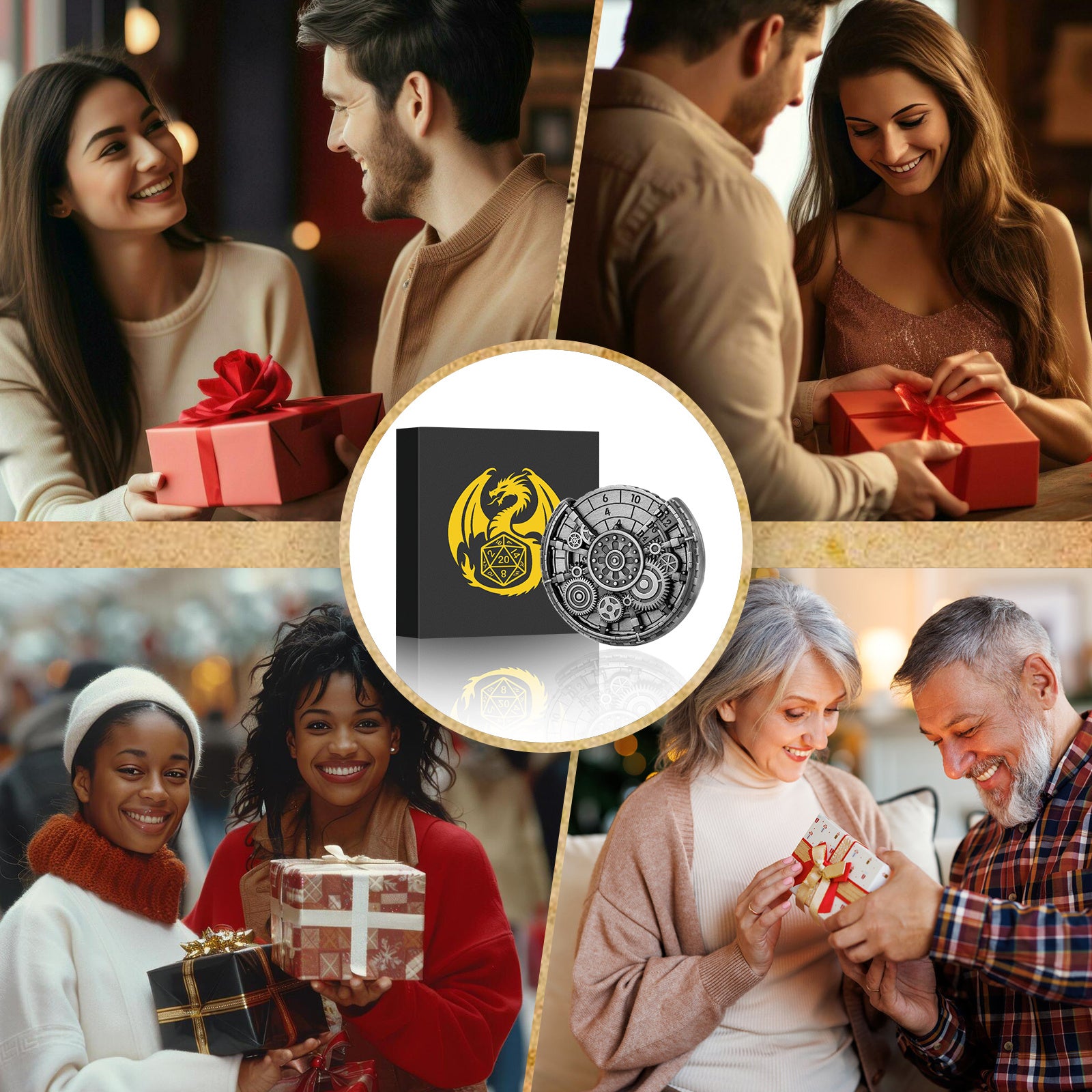 US Local Private Model Time Gear Fingertip Gyroscope Retro Wheel DND Dice Gift Box Set, Role Playing Game Dice On The Table
