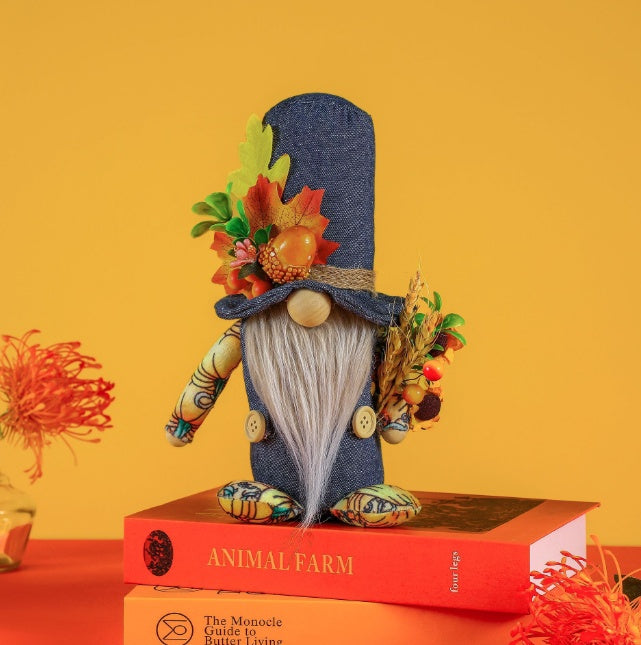 Pumpkin Maple Leaf Faceless Dwarf Thanksgiving Autumn Cowboy Rudolf Doll Ornaments