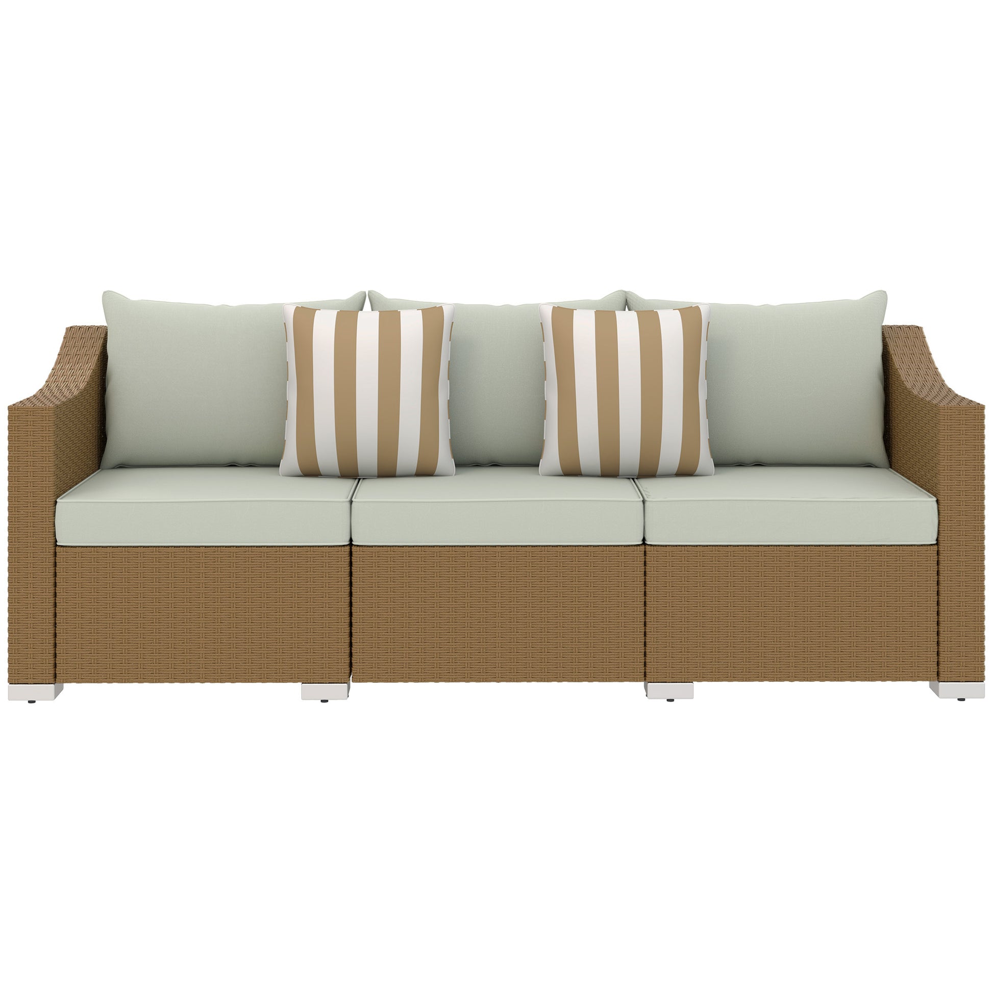 US Local Rattan Wicker 3 Seater Patio Couch With Cushions, 2 Throw Pillows, Outdoor Furniture Rattan Sofa, Light Gray