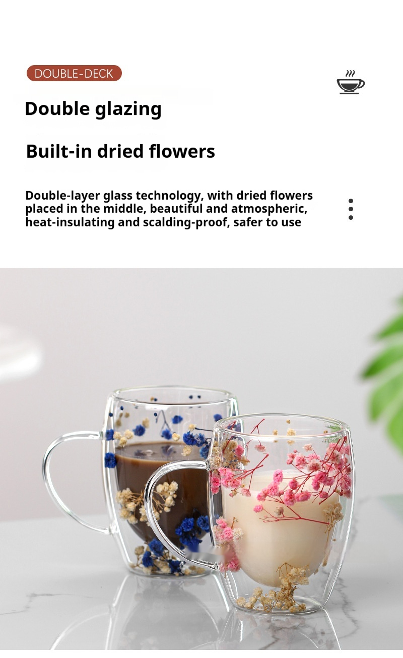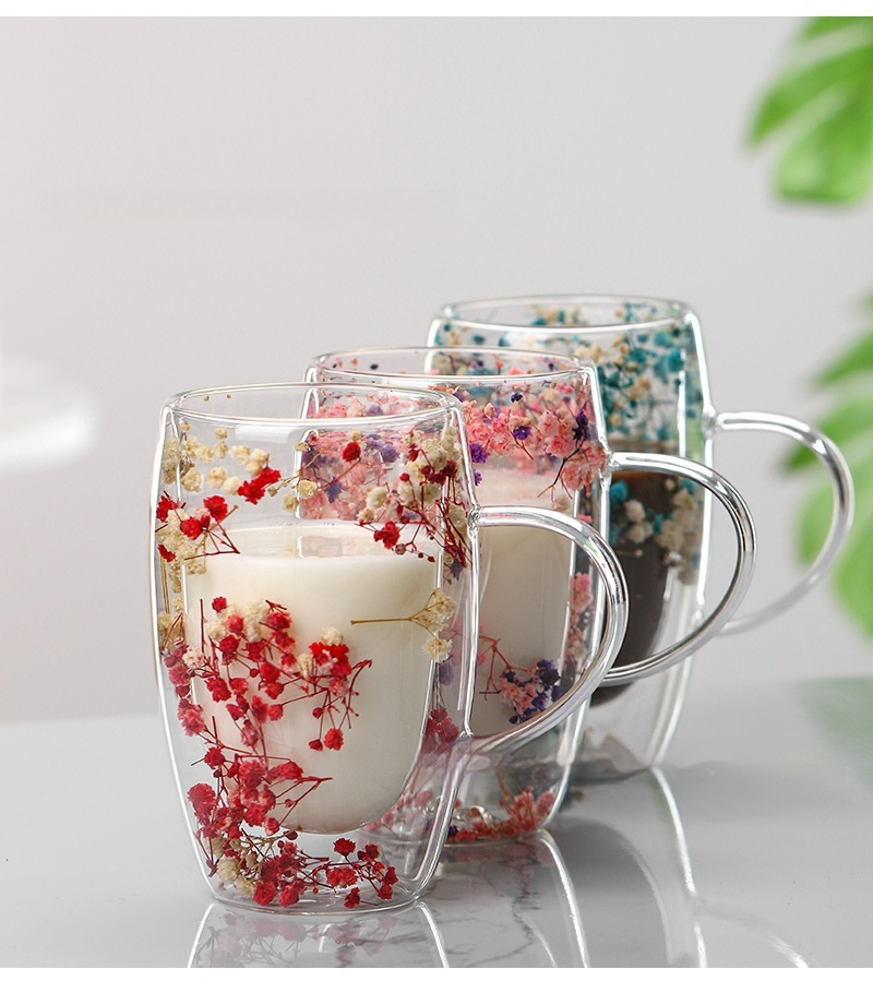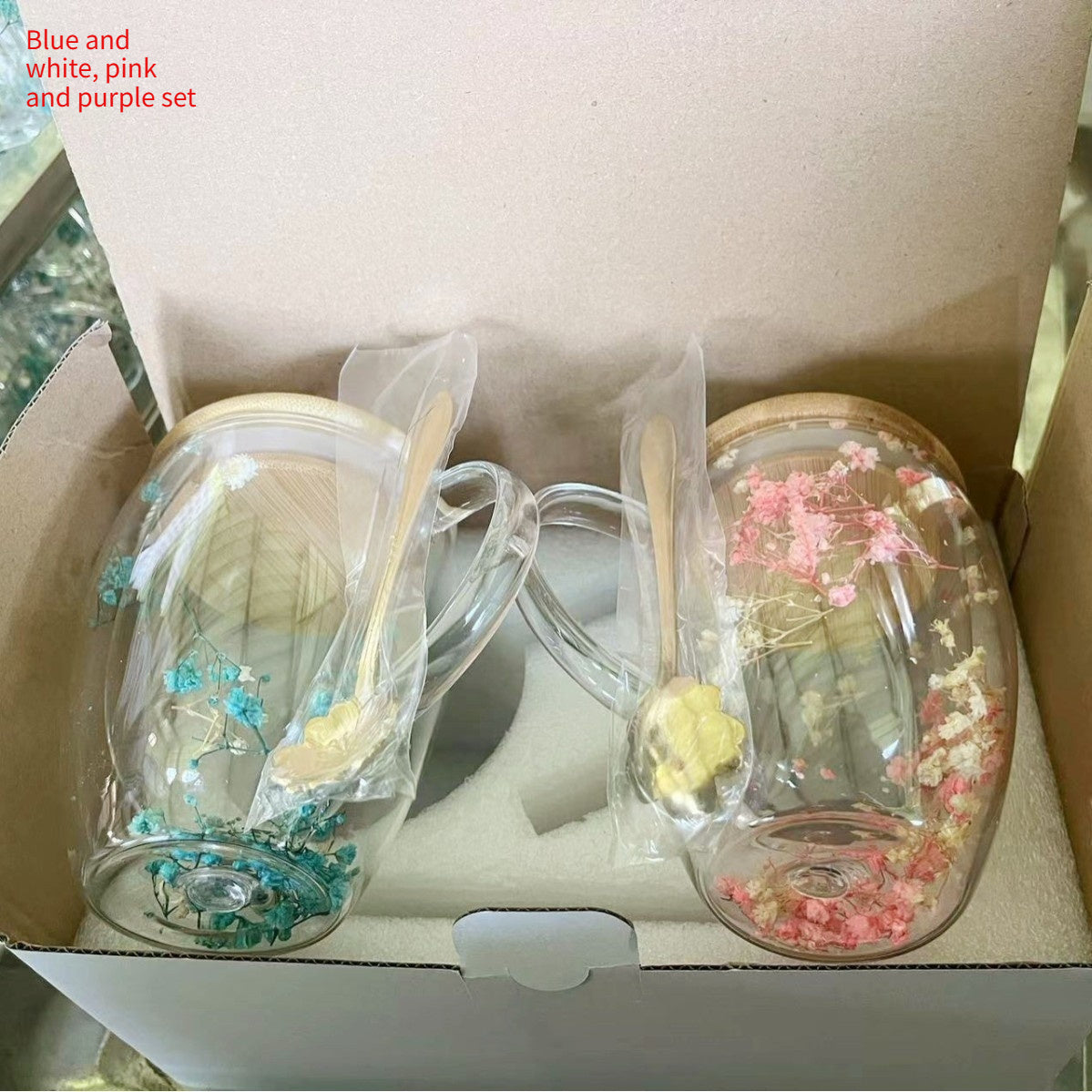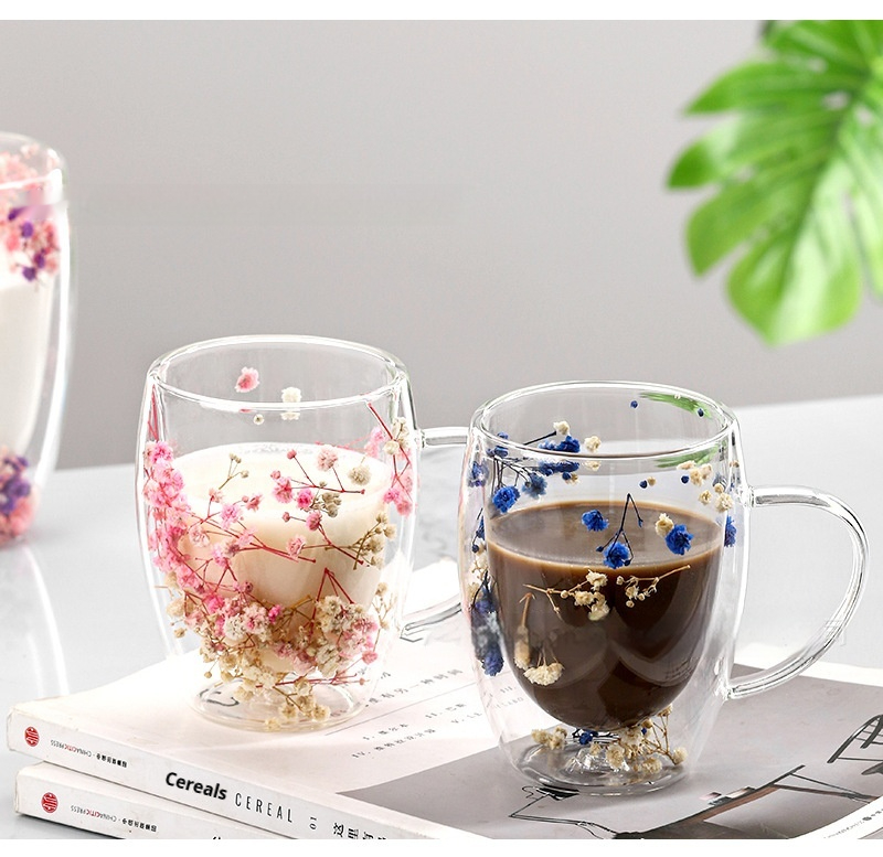 Real Flower Double Layer Glass Cup Good-looking Starry Sky