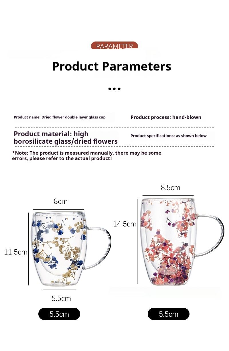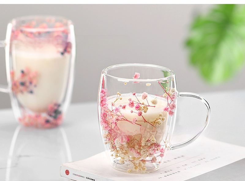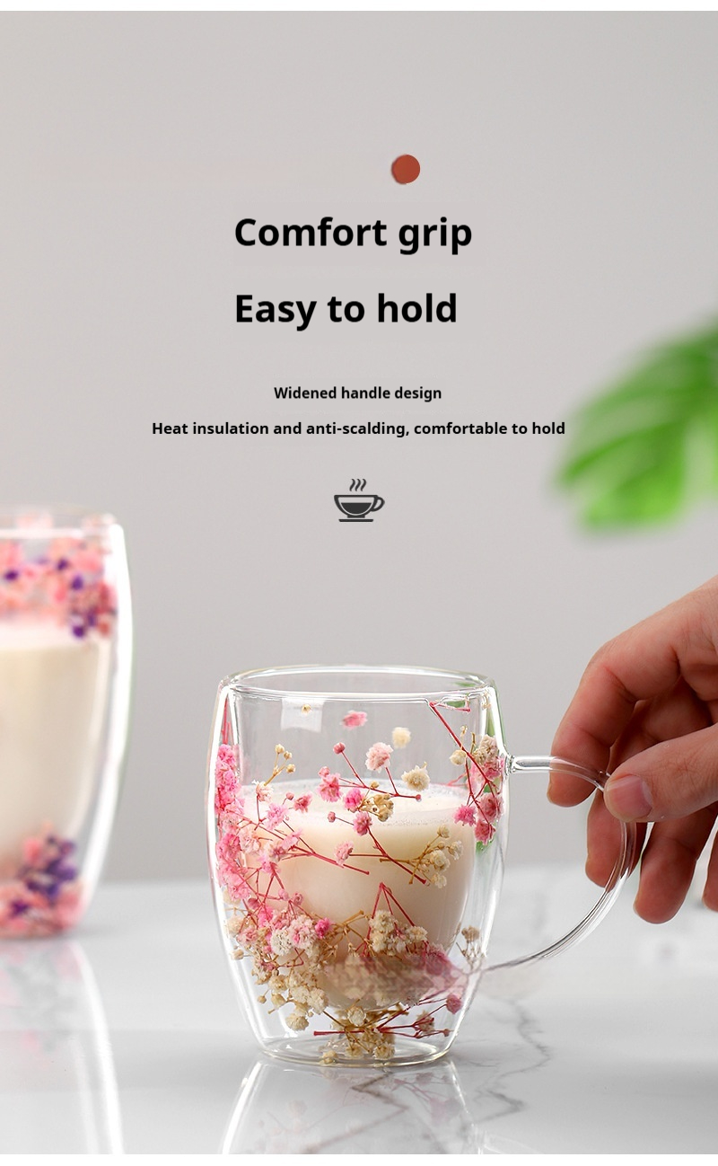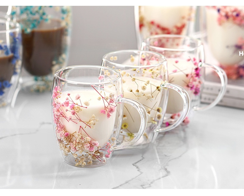 Real Flower Double Layer Glass Cup Good-looking Starry Sky